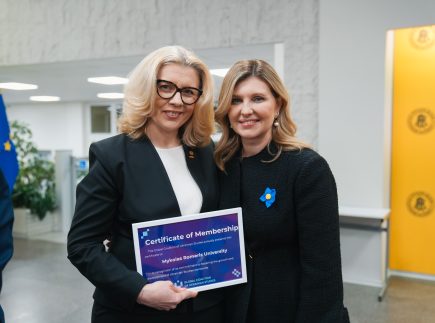 On January 25, Rector of Mykolas Romeris University (MRU), Prof. Dr. Inga Žalėnienė, signed a Memorandum of Cooperation with the Ukrainian state non-profit organization Fund of the President of Ukraine for the Support of Education, Science, and Sports. The memorandum was signed during the visit to Lithuania of the First Lady of Ukraine, Ambassador of the Global Coalition of Ukrainian Studies, Olena Zelenska, at the Ukrainian Center in Vilnius.
