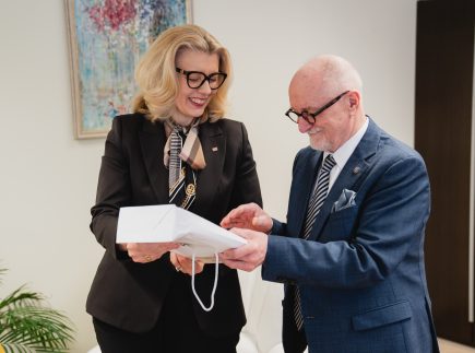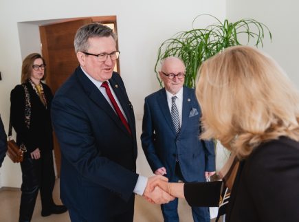 On January 27, the Rector of Mykolas Romeris University (MRU), Prof. Dr. Inga Žalėnienė, welcomed the Head of the Embassy of the Republic of Poland in Lithuania, Grzegorz Marek Poznański, and the Director of the Eastern Europe Studies Centre at the University of Warsaw (Poland), Prof. Dr. Jan Malicki.