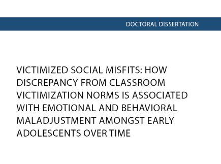 Šioje disertacijoje tiriamas jaunų paauglių klasės viktimizacijos normų neatitikimo ir internalių bei eksternalių sunkumų padidėjimo per mokslo metus ryšys. Tyrimas remiasi „sveiko konteksto paradokso" konceptu: teigiama, kad patyčios klasėse, kuriose nustatytas žemesnis viktimizacijos lygis, glaudžiau susijusios su moksleivių gerove nei klasėse, kuriose šis lygis aukštesnis. Tyrime dalyvavo 706 pradinės ir pagrindinės mokyklos mokiniai (9-14 metų amžiaus) iš JAV (80 mergaičių, 85 berniukai) ir Lietuvos (259 mergaitės, 282 berniukai). Du kartus per mokslo metus buvo surinktos bendraamžių nominacijos ir mokinių savęs įvertinimai apie fizinę ir santykių viktimizaciją bei eksternalius (elgesio problemas, delinkventinį elgesį, fizinę agresiją, trikdantį elgesį) ir internalius sunkumus (emocinius simptomus ir vienatvę). Longitudinė Grupės aktoriaus partnerio abipusės priklausomybės modelio (G-APIM) analizė parodė, kad mokiniai, labiau neatitinkantys klasės fizinės viktimizacijos normų, patiria daugiau eksternalių sunkumų per metus. Tuo tarpu klasės normų neatitikimas santykių viktimizacijos srityje yra susijęs su padidėjusiu vienatvės jausmu. Šio tyrimo rezultatai praplečia žinias apie „sveiko konteksto paradoksą" ir suteikia praktinių įžvalgų patyčių prevencijos programoms, kurios turėtų skirti ypatingą dėmesį mokiniams, išliekantiems patyčių aukomis net ir saugioje mokyklos aplinkoje.