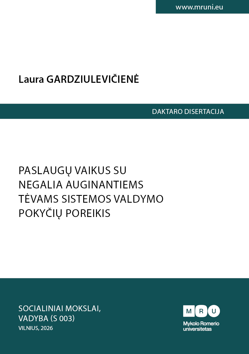 Socialinių, sveikatos ir švietimo paslaugų sistema šeimoms, auginančioms vaikus su negalia, yra svarbi viešojo sektoriaus valdymo sritis, turinti tiesioginę įtaką tėvų galimybėms derinti vaiko priežiūrą, darbą ir dalyvavimą socialiniame gyvenime. Tačiau fragmentuotas paslaugų planavimas, nepakankamas tarpsektorinis koordinavimas ir ribotas šeimų įtraukimas į sprendimų priėmimą rodo, kad tradiciniai paslaugų sistemos valdymo sprendimai nebeatitinka sudėtingos ir dinamiškos šeimų, auginančių vaikus su negalia, gyvenimo tikrovės. Todėl disertacijoje argumentuojama, kad integruotas ir įgalinimu grįstas paslaugų sistemos valdymas gali tapti tinkamu teoriniu ir praktiniu pagrindu tobulinant paslaugų teikimą Lietuvoje.