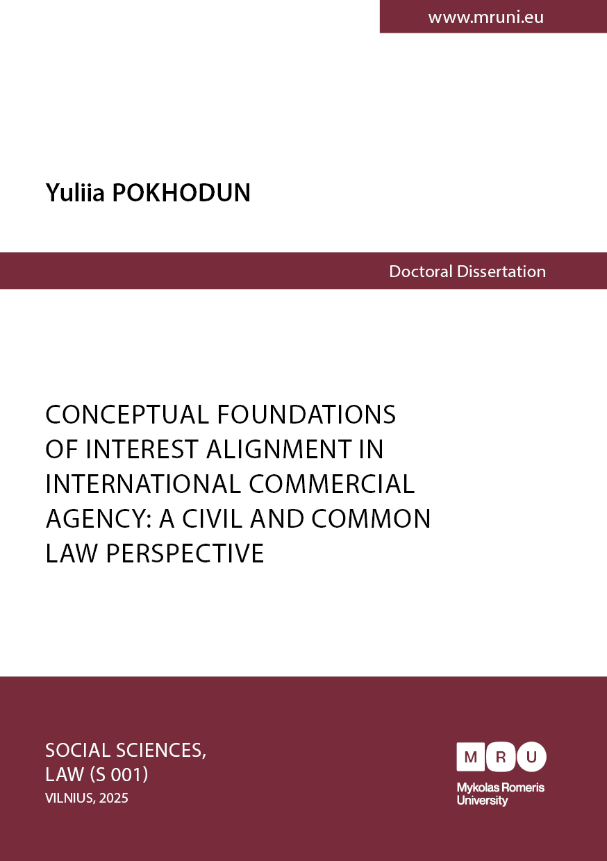 2025 m. birželio 6 d. 10 val. Yuliia Pokhodun (Privatinės teisės institutas) gins teisės mokslo krypties (S 001) daktaro disertaciją „Conceptual Foundations of Interest Alignment in International Commercial Agency: A Civil and Common Law Perspective“ (liet. k. „Konceptualūs interesų derinimo tarptautiniuose komercinio atstovavimo teisiniuose santykiuose pagrindai: kontinentinės ir bendrosios teisės perspektyvos"). Gynimas vyks I-414 aud., Mykolo Romerio universitete, Ateities g. 20, Vilnius.