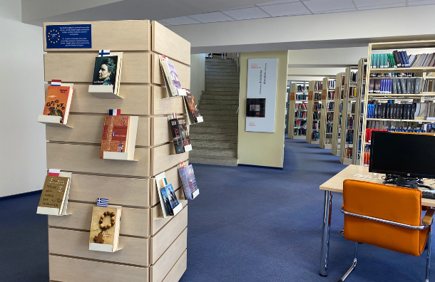 Mūsų bibliotekoje irgi lengva įžvelgti Europos įvairovę ir lietuvių brandžią vertimų kultūrą. Didžiojoje skaitykloje rasite atrinktą po vieną knygą iš kiekvienos Europos šalies. Pasinerkite į skirtingus Europos autorių sukurtus pasaulius: pasimėgaukite Olgos Tokarčuk tokiu tikru Lenkijos kalnų peizažu mistiniame detektyve, atraskite skaudžią katalonų istoriją Carlos Ruiz Zafón knygoje „Vėjo šešėlis“; tiesiog perskaitykite Imre Kertesz, žmogaus išgyvenusio Holokaustą, knygą.