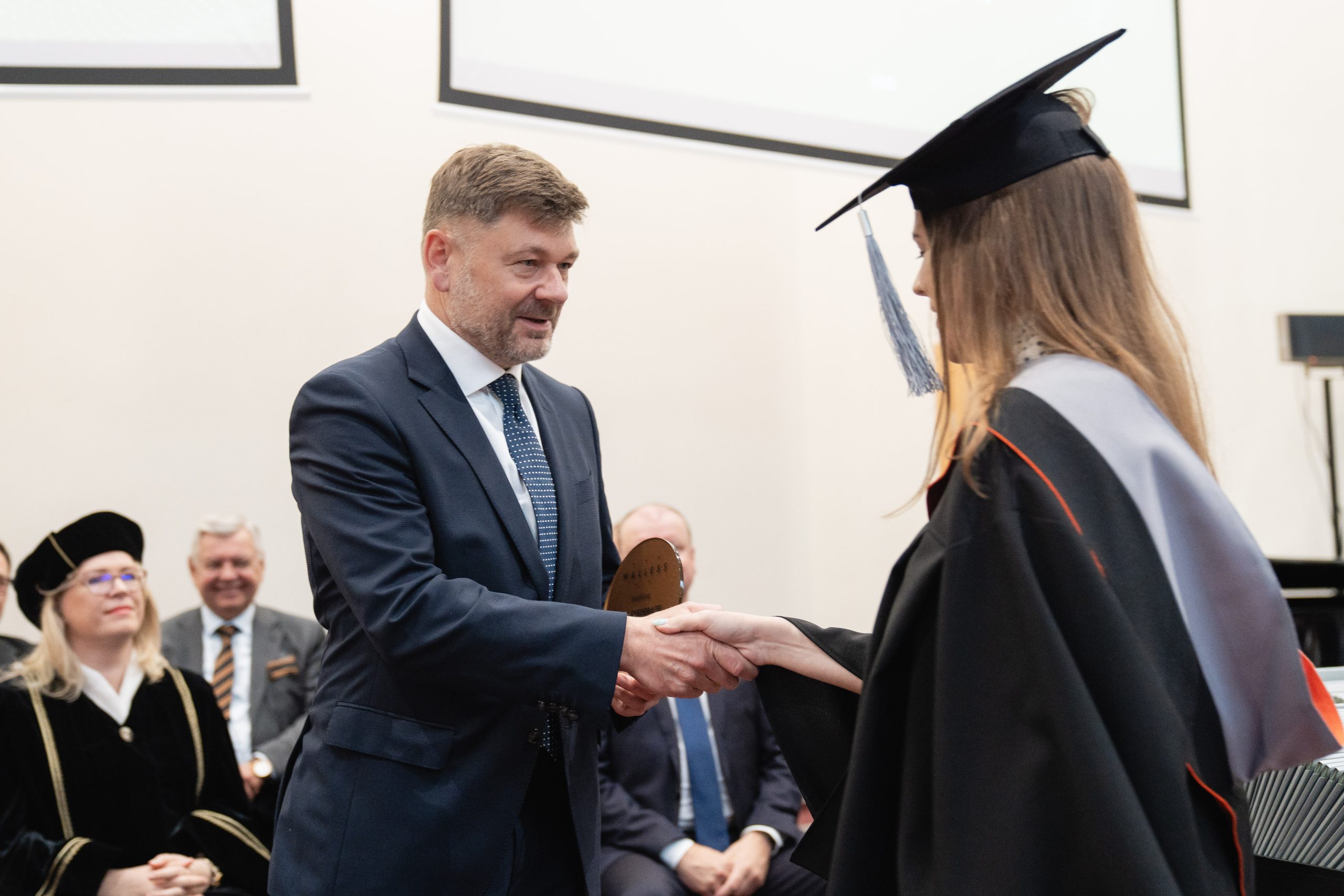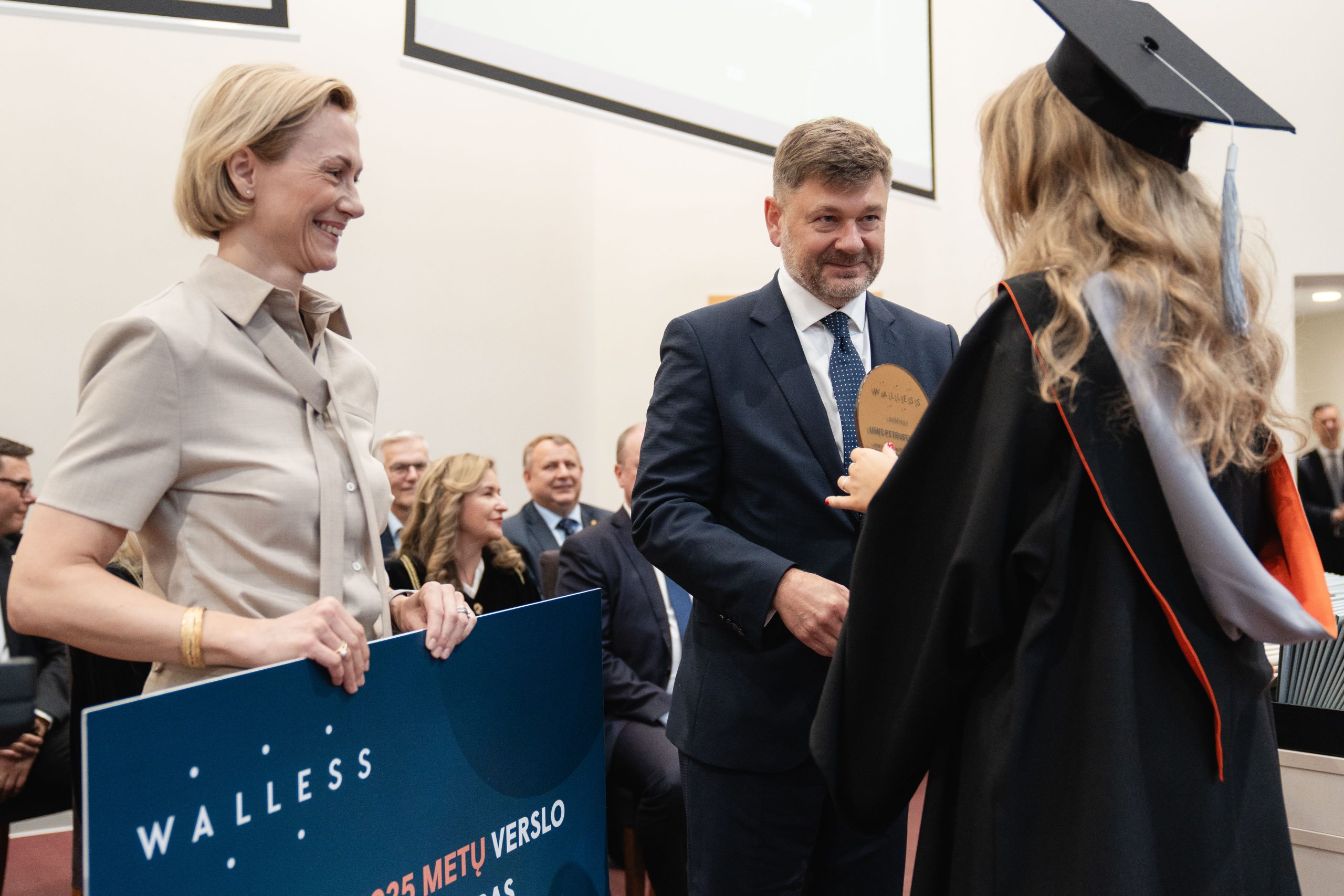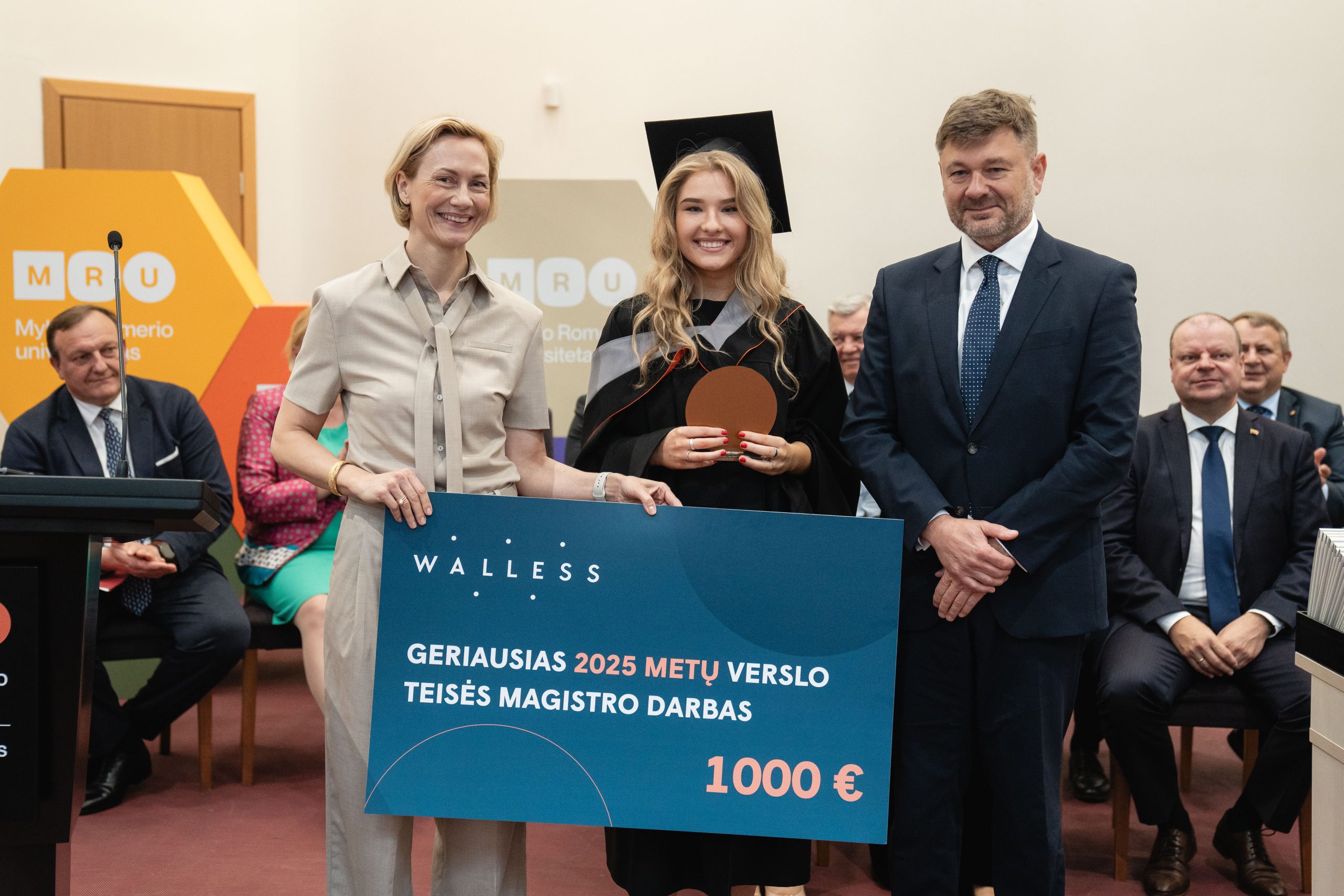 Advokatų profesinė bendrija WALLESS šiais metais pirmą kartą įsteigė 1000 eurų vertės piniginę premiją už geriausią magistro baigiamąjį darbą verslo teisės tematika. Taip pat buvo įteiktos padėkos antrą ir trečią vietas užėmusių darbų autoriams. Apdovanojimus iškilmingos ceremonijos metu įteikė WALLESS partneriai Simona Drukteinienė ir Gediminas Dominas.