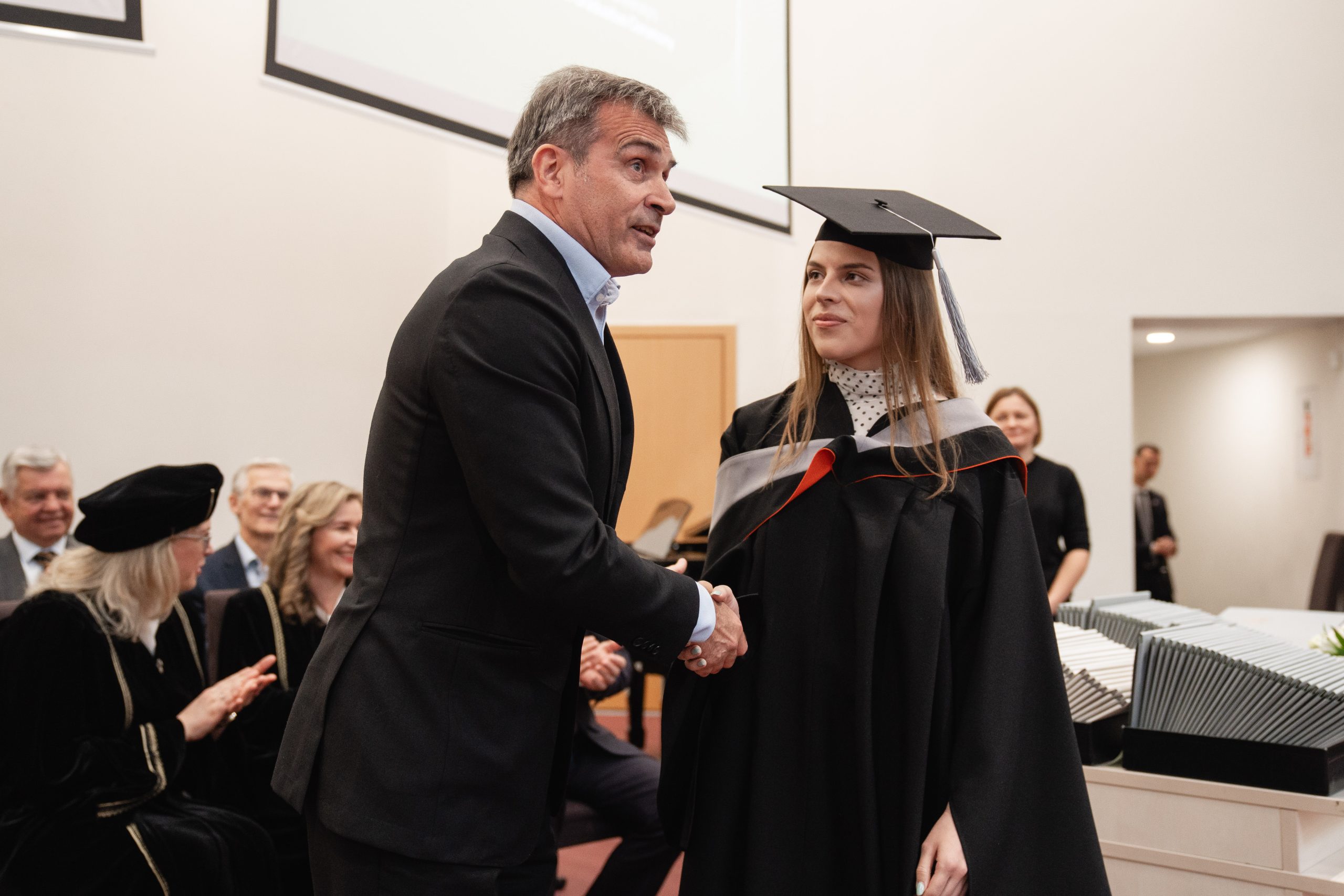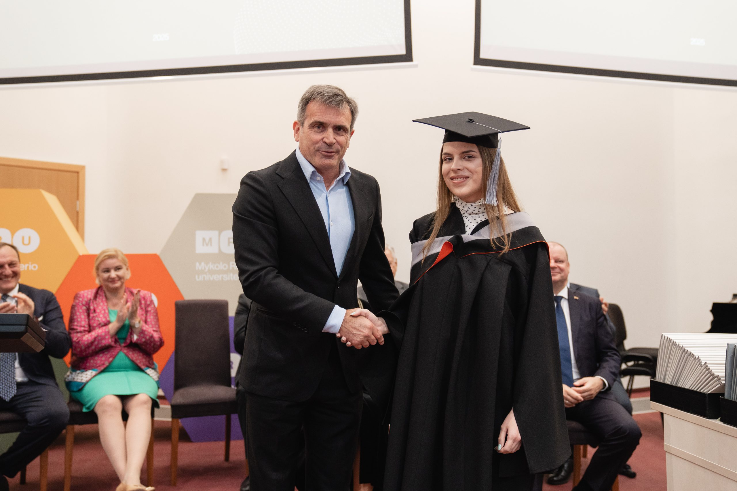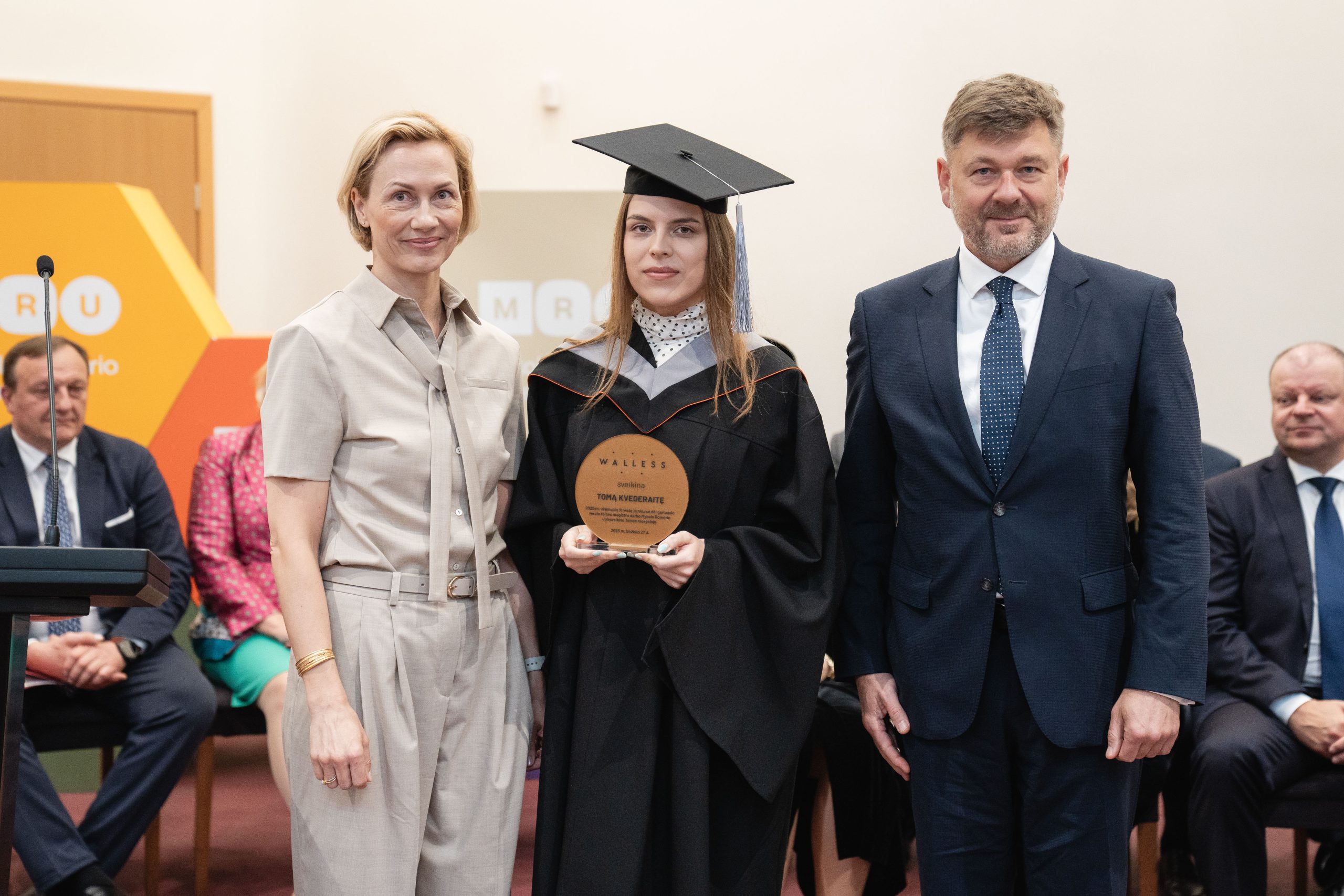 Birželio mėnesį vykusios Mykolo Romerio universiteto (MRU) Teisės mokyklos diplomų įteikimo šventės metu pagerbti ne tik šių metų absolventai, bet ir išskirtiniais pasiekimais pasižymėję magistro darbų autoriai. Prie akademinės bendruomenės įvertinimo prisidėjo ir socialiniai partneriai – advokatų profesinė bendrija WALLESS bei tarptautinė paslaugų įmonė Citco Mercator, UAB, įsteigę specialius prizus už geriausius baigiamuosius darbus verslo ir įmonių teisės srityse.