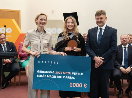 Pagrindinę WALLESS premiją pelnė Civilinės ir verslo teisės programos absolventė Ugnė Petrusevičiūtė už baigiamąjį darbą „Sutartinės ir deliktinės atsakomybės atskyrimas tarp šalių esant sutartinių santykių grandinei“ (darbo vadovas – prof. dr. Vaidas Jurkevičius).