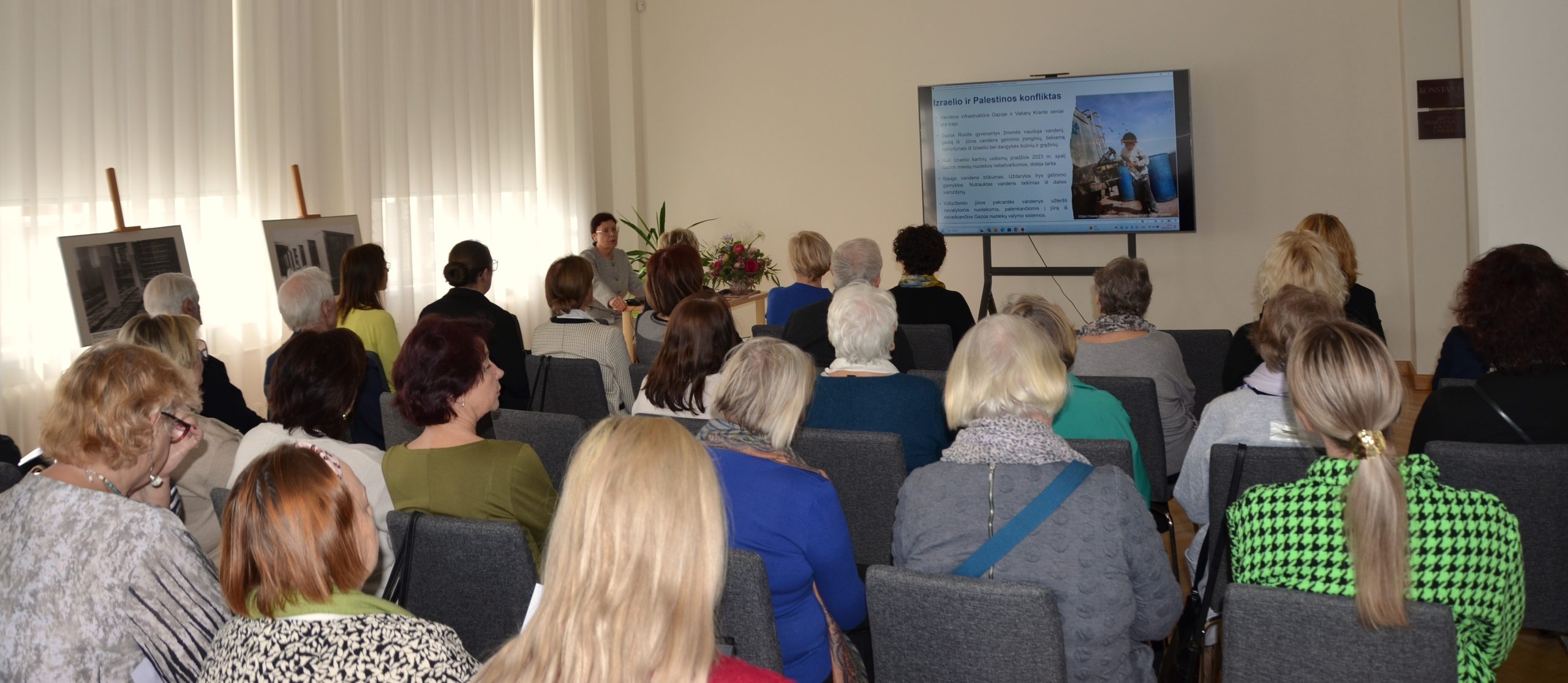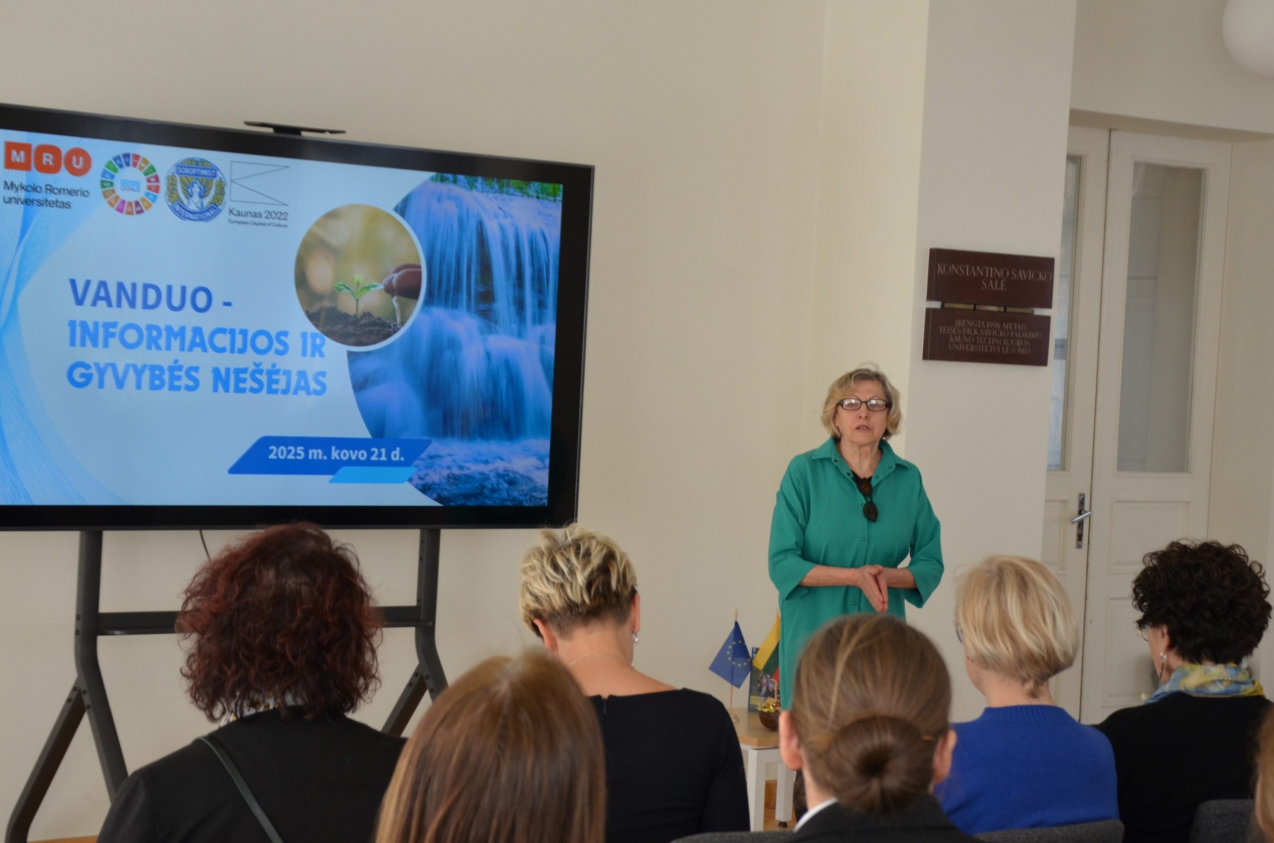 Laima Česonienė, VDU Žemės ūkio akademijos Miškų ir ekologijos fakulteto Aplinkos ir ekologijos katedros profesorė, kalbėjo apie globalų ir vietinį vandens trūkumo klausimą, pristatydama pranešimą „Kova dėl vandens pasaulyje / Lietuvoje“. Ji išsamiai aptarė vandens išteklių paskirstymo problemas, akcentuodama, kad vandens stoka yra ne tik sausros, bet ir žmogaus veiklos, pavyzdžiui, karinių konfliktų, pasekmė.