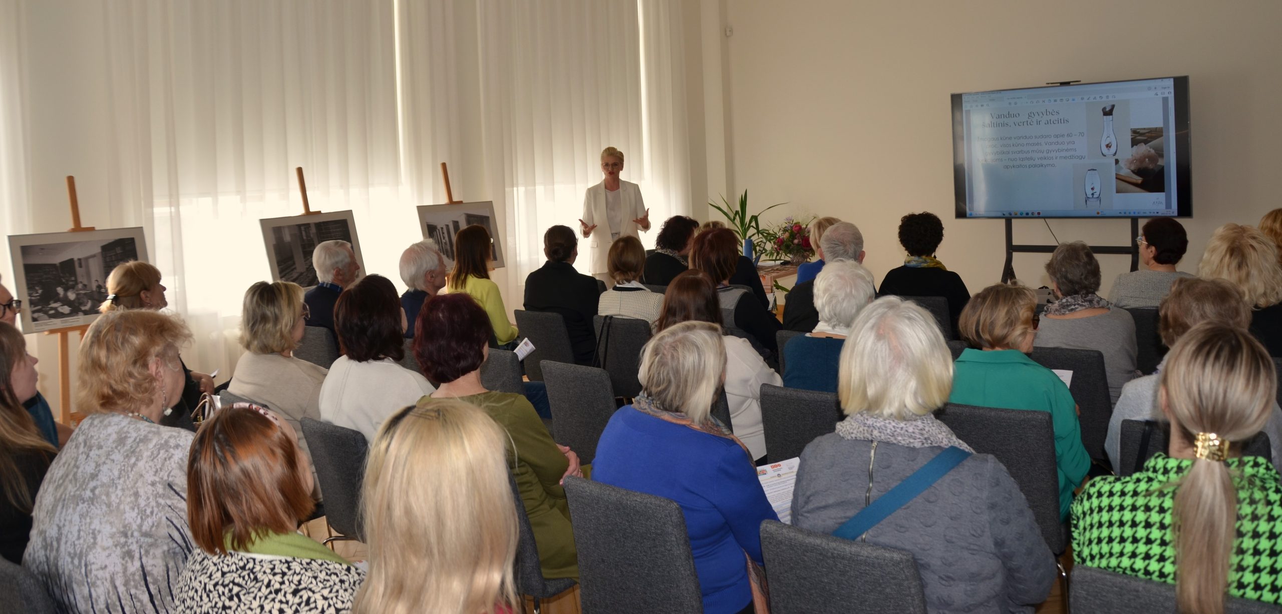 Sandra Malinauskienė, Kauno centrinio knygyno „Pegasas“ vadovė, pristatė temą „Vandens ir gamtos terapija“. Pristatymo metu buvo apžvelgtos knygų naujienos apie vandens ir gamtos ryšį su žmogaus gerove ir sveikata. Šią temą papildė ir MRU VSA vyriausioji bibliotekininkė Benita Sušinskaitė, kuri pristatė tiek mokslinę, tiek grožinę literatūra šia tema. Abi pranešėjos akcentavo, kad šiandienos visuomenėje, kuri dažnai kenčia nuo streso, įtampos ir sveikatos problemų, knygos apie gamtos ir vandens terapiją gali būti svarbus šaltinis, siekiant atgauti pusiausvyrą ir sveikatą tiek fiziškai, tiek emociškai.