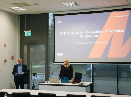 MRU Viešojo valdymo ir verslo fakulteto profesorius dr. Algis Krupavičius studentams skaitė paskaitą apie skaitmeninį suverenitetą ir mokslo diplomatiją Vidurio ir Rytų Europoje, aptardamas, kaip mažos valstybės gali stiprinti savo pozicijas globalių technologijų lenktynėse; kuriant tvirtas dirbtinio intelekto ekosistemas, skatinant inovacijas ir laikantis etikos principų.