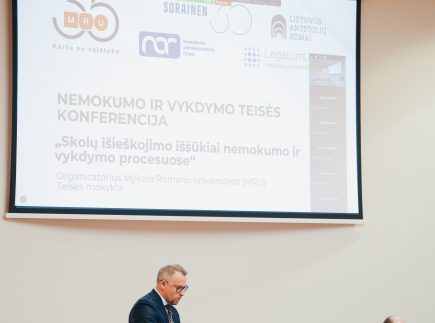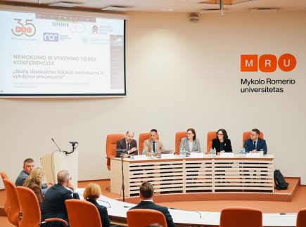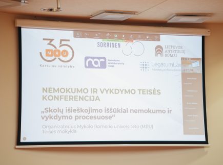 2025 m. balandžio 24 d. Mykolo Romerio universitete vyko nemokumo ir vykdymo teisės konferencija „Skolų išieškojimo iššūkiai nemokumo ir vykdymo procesuose“. Tai trečioji nemokumo teisei skirta konferencija, kurioje pagrindinis dėmesys buvo skiriamas nemokumo bei priverstinio vykdymo procesų (ne)suderinamumo problemų aptarimui. Renginyje dalyvavo įvairių teisės sričių profesionalai – teisėjai, advokatai, antstoliai, nemokumo administratoriai, teisėkūros atstovai, mokslininkai bei teisės srities studentai.