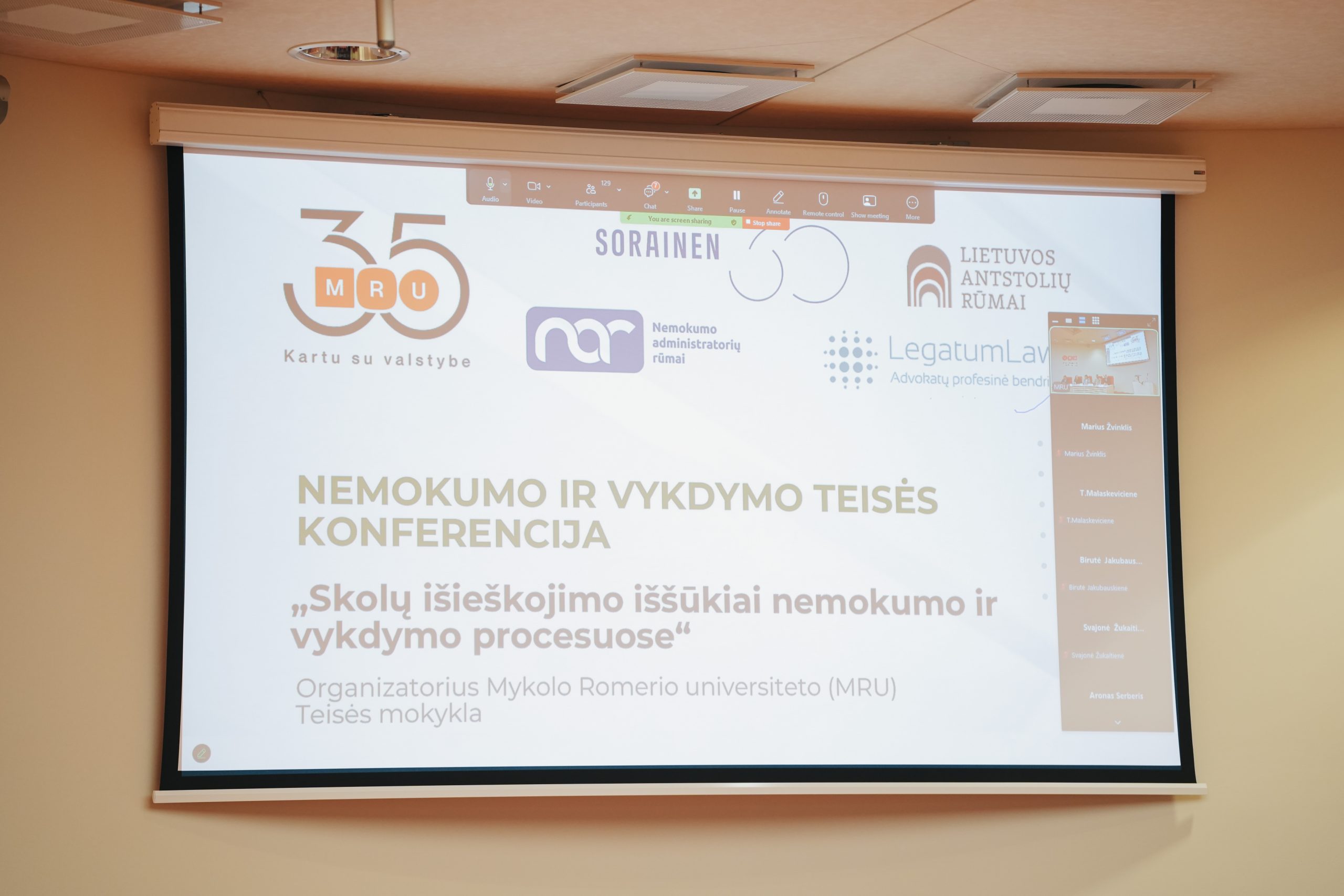 Konferencijos organizatoriai nuoširdžiai dėkoja visiems dalyvavusiems konferencijoje ir konferencijos rėmėjams: advokatų profesinei bendrijai LegatumLaw, Lietuvos antstolių rūmams, Nemokumo administratorių rūmams, advokatų kontorai „Sorainen“.