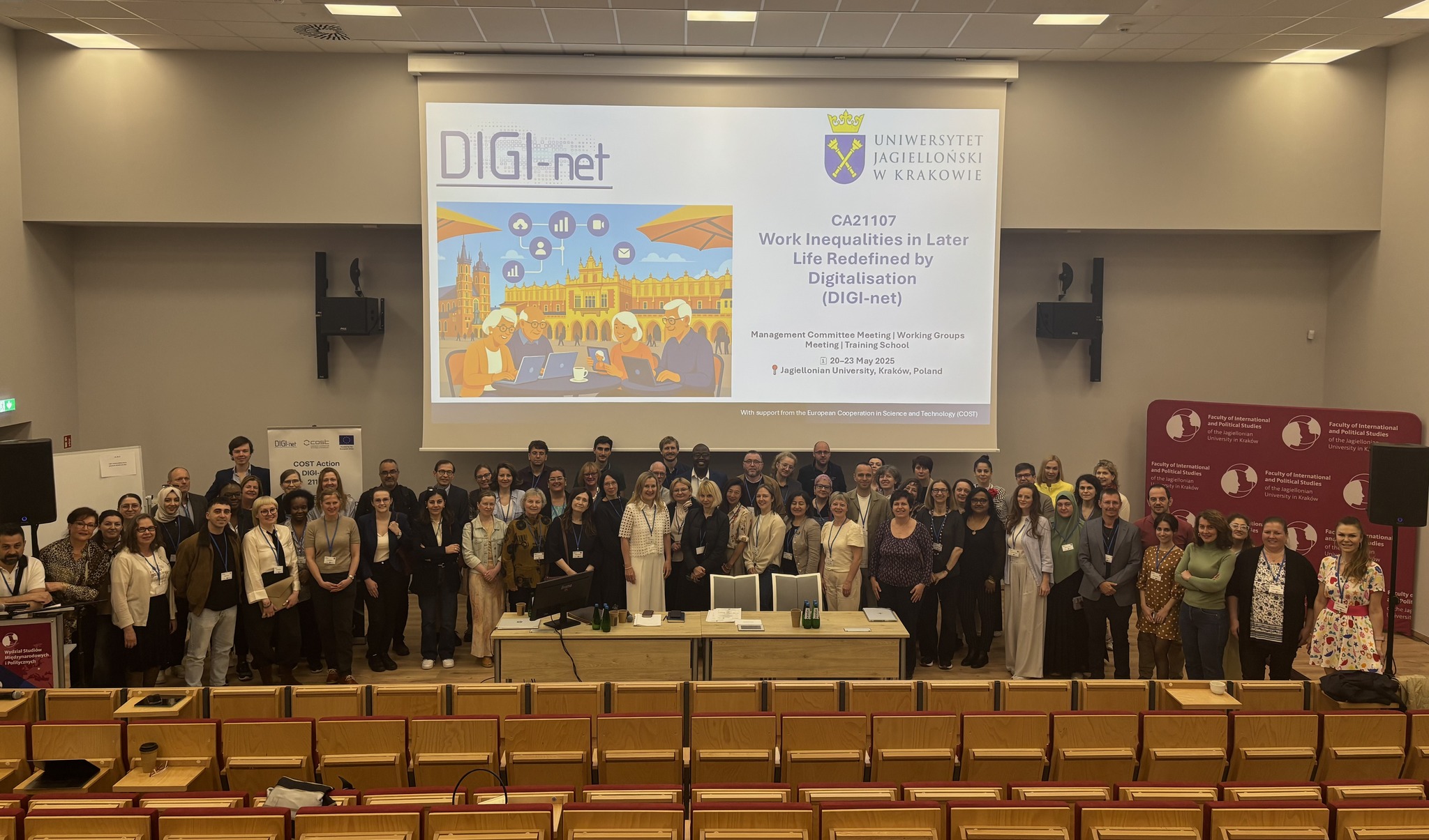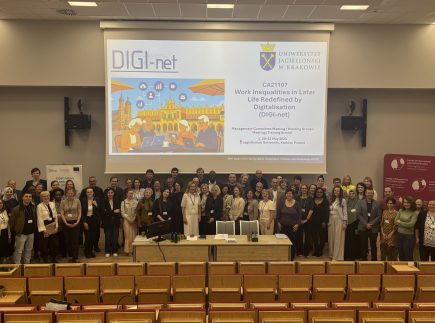 Gegužės 20-21 d. Jogailos universitete Krokuvoje (Lenkija) vyko tarptautinės COST veiklos CA21107 „DIGI-net: Skaitmenizacijos poveikis vyresnio amžiaus asmenų darbo rinkos nelygybei“ valdymo komiteto ir darbo grupių susitikimai. Šiuose susitikimuose aktyviai dalyvavo ir Mykolo Romerio universiteto (MRU) Žmogaus ir visuomenės studijų fakulteto (ŽVSF) prodekanė tarptautiniams ryšiams ir projektams, profesorė dr. Jolanta Pivorienė.