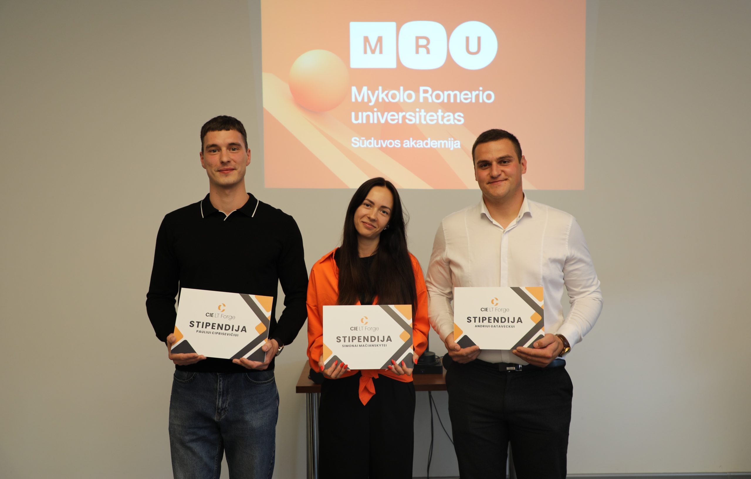 Mykolo Romerio universiteto (MRU) Sūduvos akademijos (SUA) studentams įteiktos Marijampolėje įsikurusios įmonės UAB „CIE LT FORGE“ vardinės stipendijos. Finansinį paskatinimą gavę studentai turi daugiau galimybių tobulinti savo kompetencijas, o baigę studijas prisidėti prie regiono plėtros.
