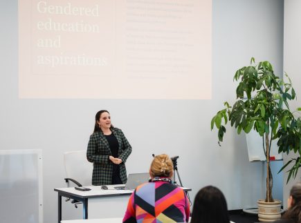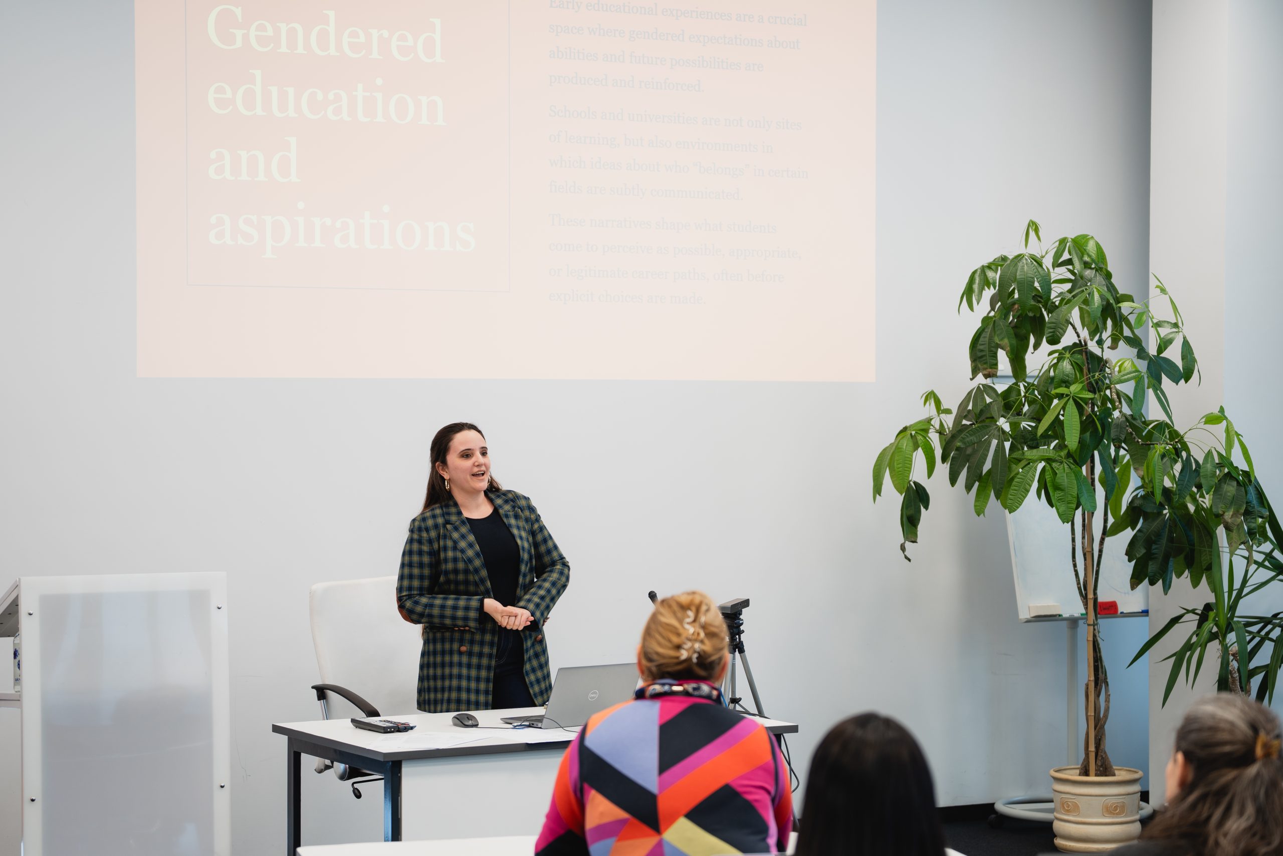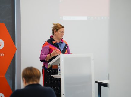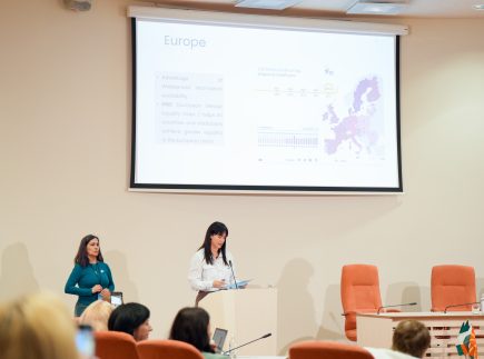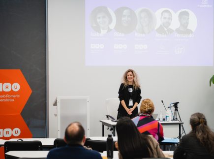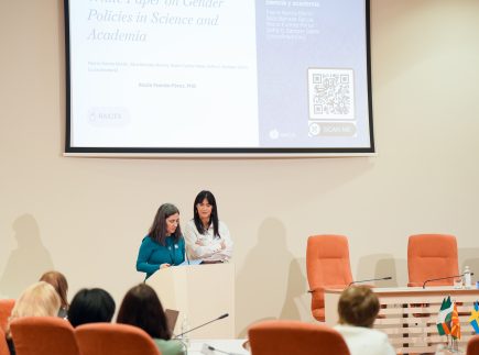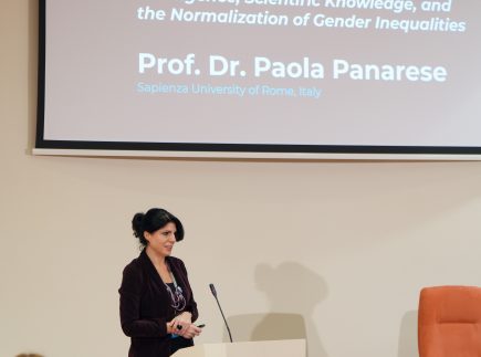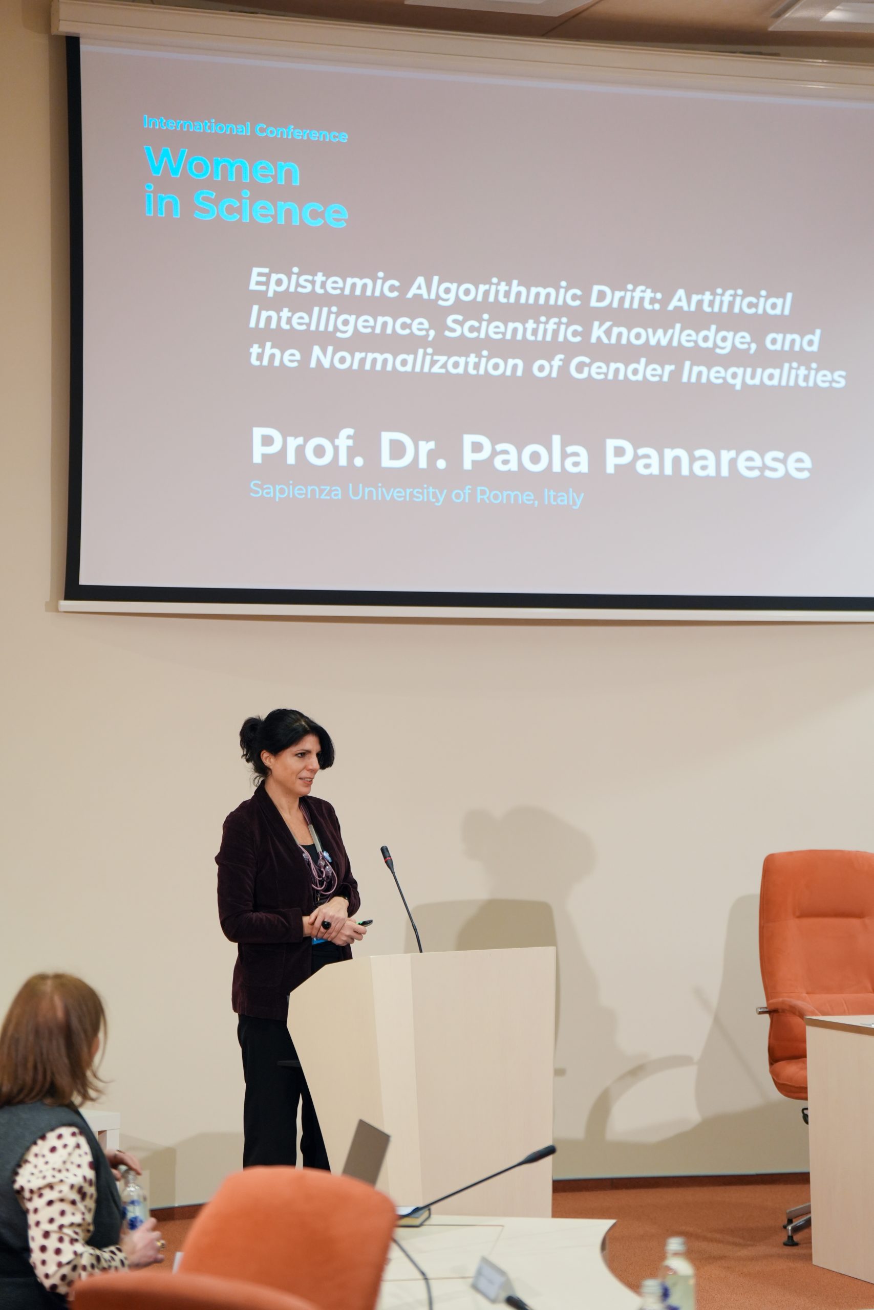 Prof. dr. Paola Panaresė (Paola Panarese) savo pranešime nagrinėjo dirbtinio intelekto ir algoritmų sąveiką su mokslinių žinių kūrimu, atskleidžiant, kaip technologiniai sprendimai gali prisidėti prie lyčių nelygybės mažinimo. Lietuvos ir užsienio mokslininkės taip pat diskutavo apie mentorystę kaip praktinį įrankį, skatinantį lyčių įvairovę technologijų sektoriuje, įtraukių ir etiškų akademinių kultūrų kūrimą bei Lietuvos ir užsienio patirtis šioje srityje.