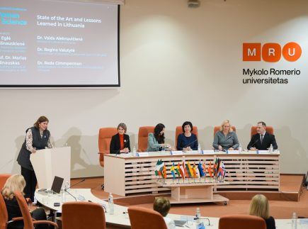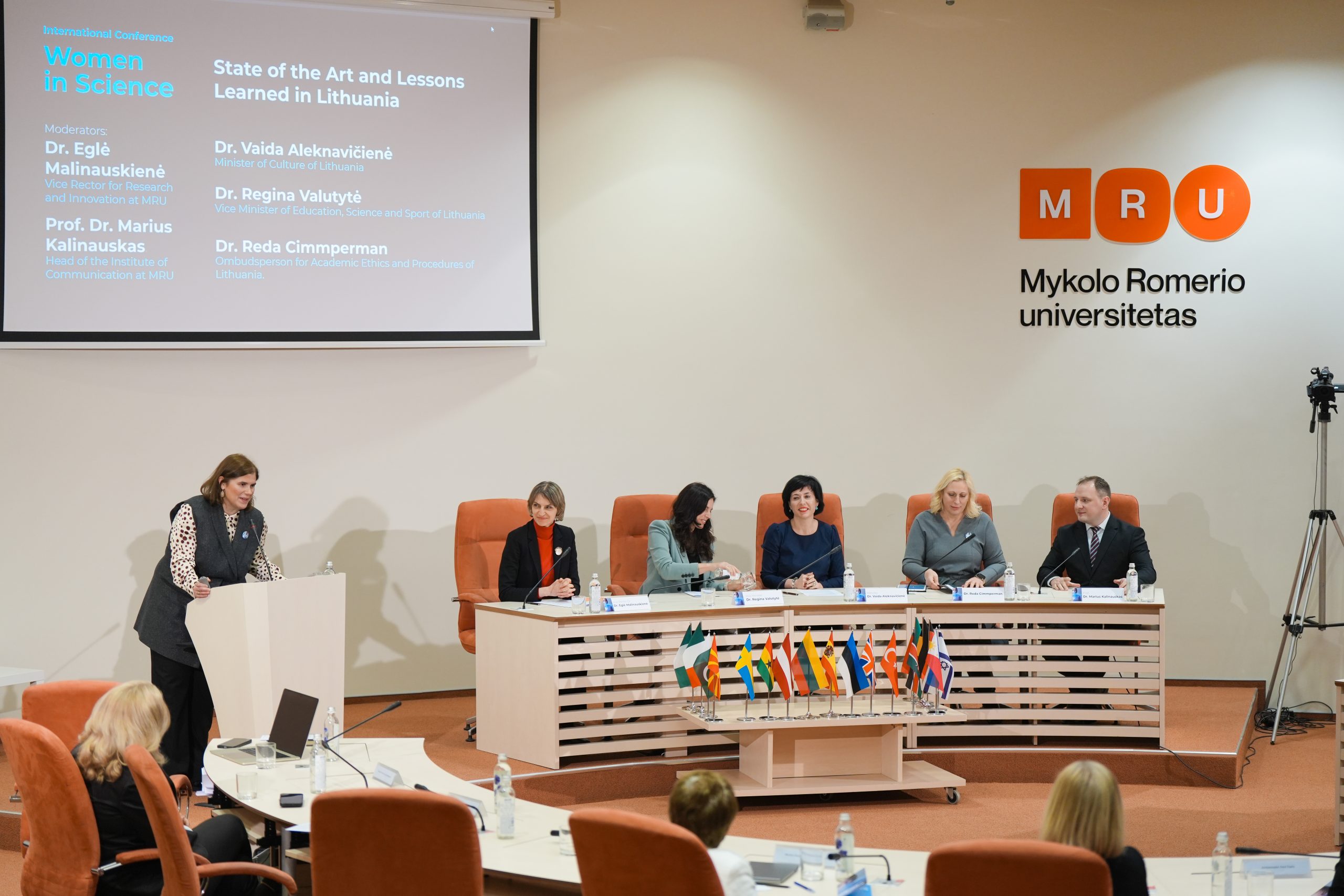 Lietuvos respublikos kultūros ministrė dr. Vaida Aleknavičienė, Švietimo, mokslo ir sporto viceministrė dr. Regina Valutytė, Akademinės etikos ir procedūrų kontrolierė dr. Reda Cimperman (Reda Cimmperman), MRU vicerektorė mokslui ir inovacijoms dr. Eglė Malinauskienė aptarė lyčių lygybės politiką moksle, moterų vaidmenį mokslinėse bendruomenėse bei institucinius sprendimus, padedančius užtikrinti lygias galimybes tyrimų ir inovacijų srityse.