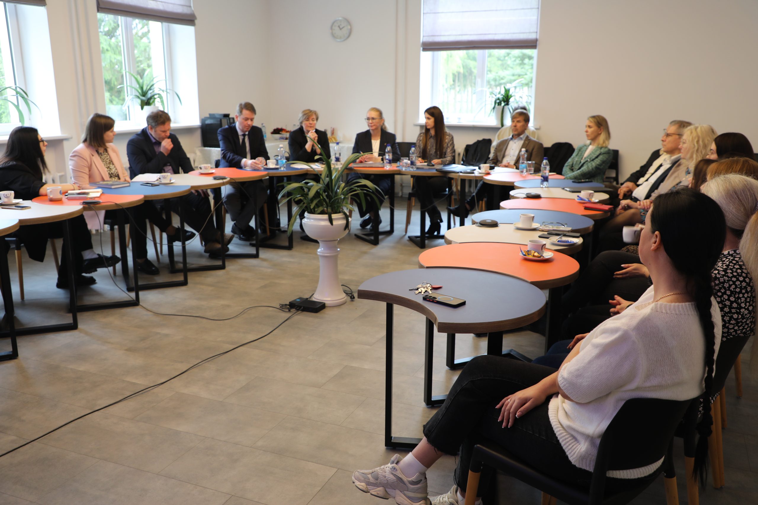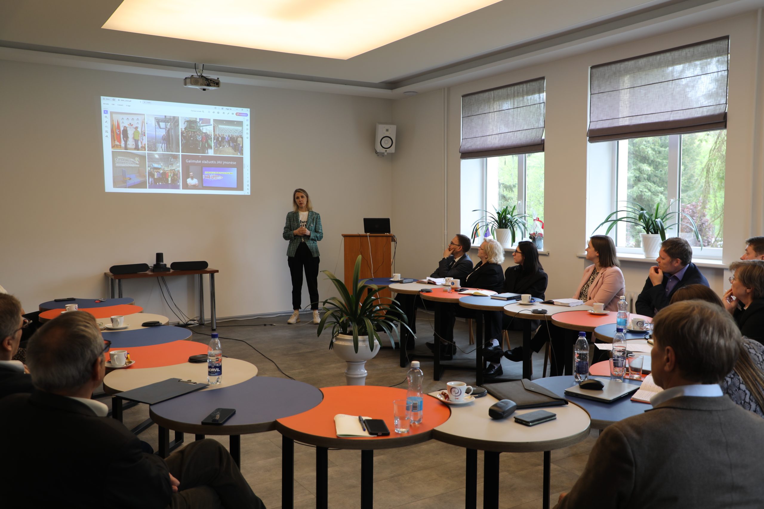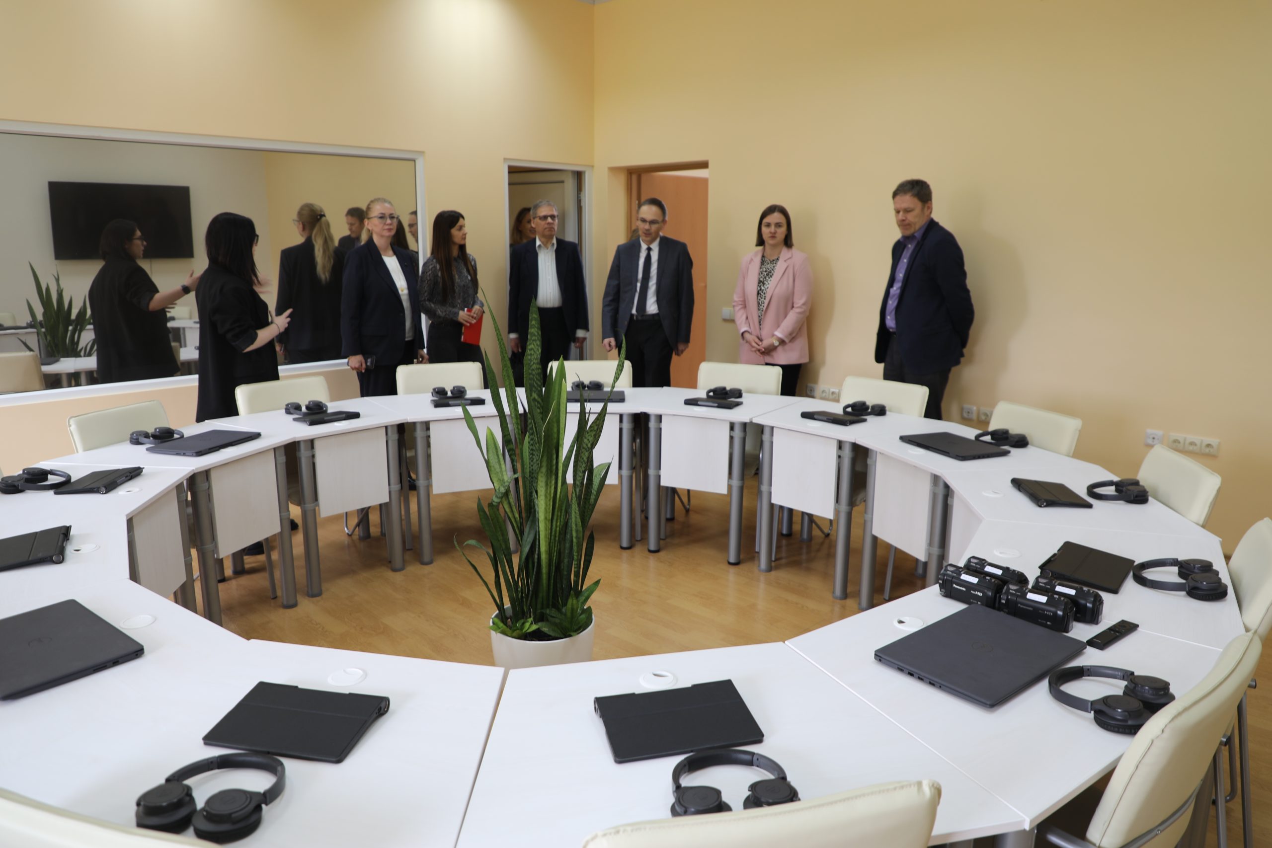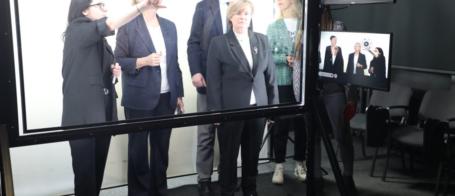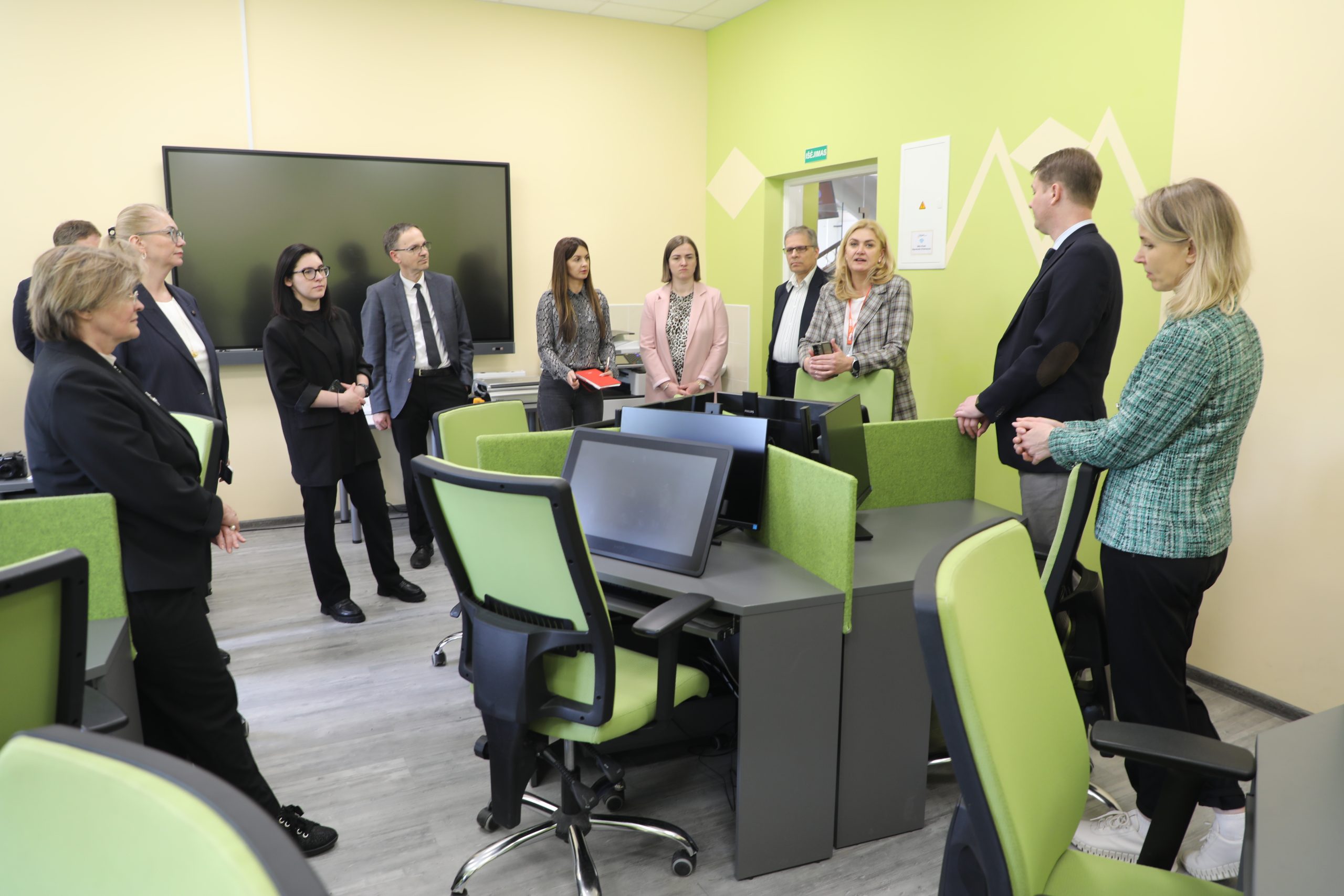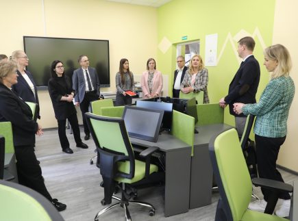 Vizito metu svečiai apžiūrėjo SUA materialinę bazę – auditorijas, Interaktyvią video studiją, Marijampolės regioninį STEAM atviros prieigos centrą ir kitą studijoms pritaikytą infrastruktūrą.