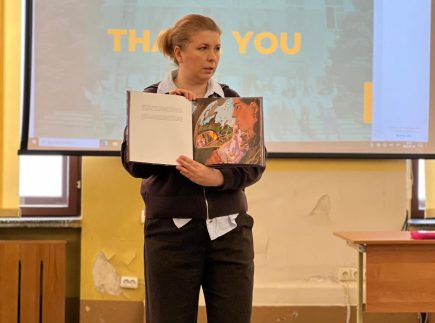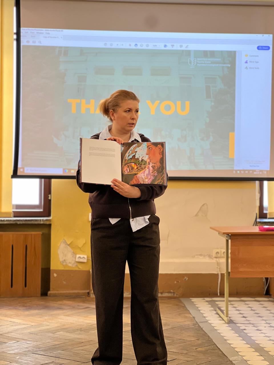 Tavrijos valstybinio agrotechnologinio universiteto prof. Daryja Legeza papasakojo apie miesto okupaciją, vykdomus miesto žmonių kankinimus ir žudymus. Profesorė taip pat įteikė Yulijos Tveritinos išleistą knygą-albumą apie tragediją Melitopolio mieste. Atsidėkodama V. Mockuvienė pakvietė viešnią atvykti į Kėdainius, 2026 m. Lietuvos kultūros sostinę, ir dalyvauti miesto organizuojamose šventėse.