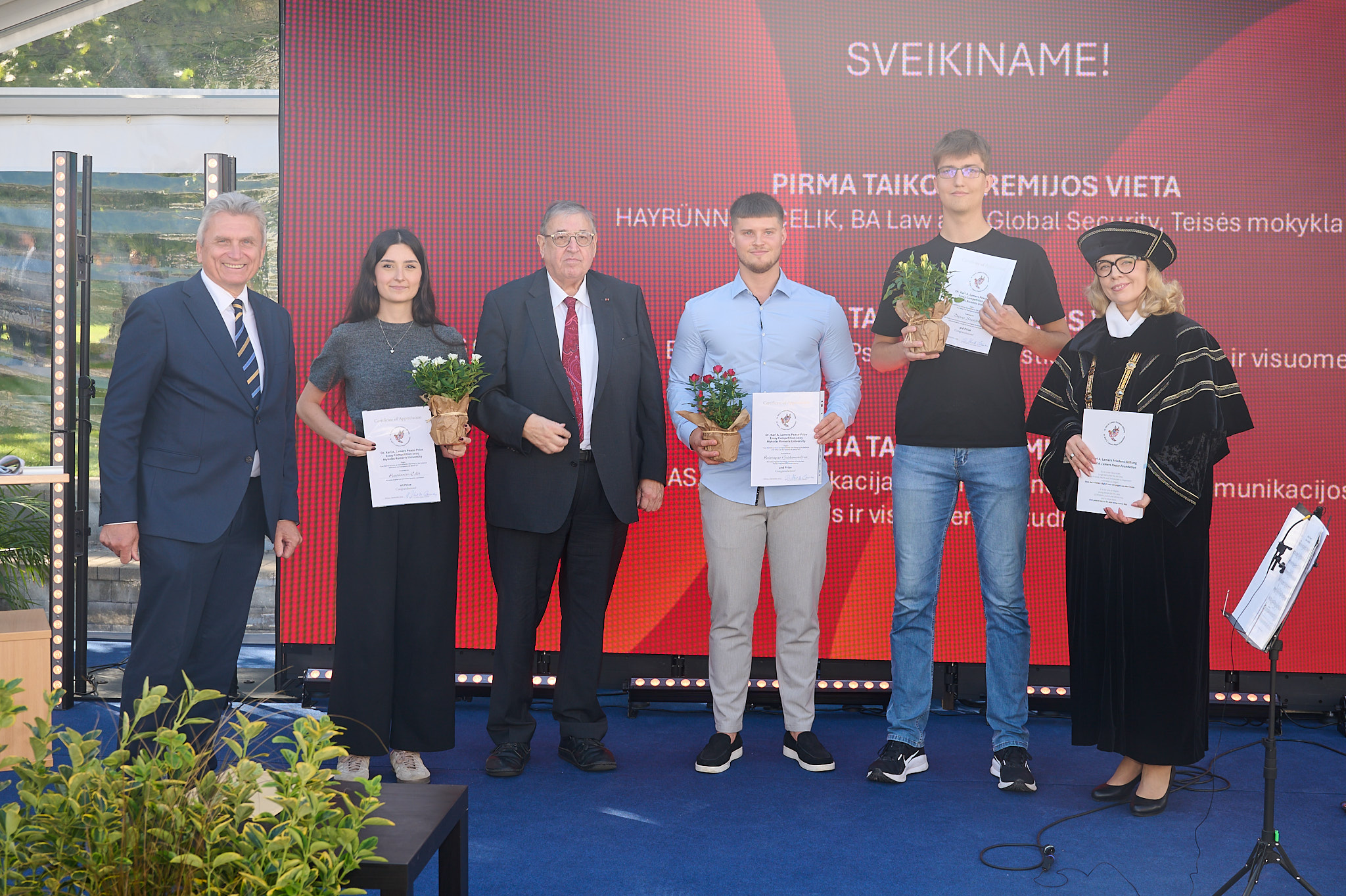 Mokslo metų atidarymo šventėje rugsėjo pirmąją Mykolo Romerio Universitete (MRU) paskelbti ir apdovanoti MRU studentai, tapę 2025 metų Dr. Karlo A. Lamerso Taikos konkurso nugalėtojais.