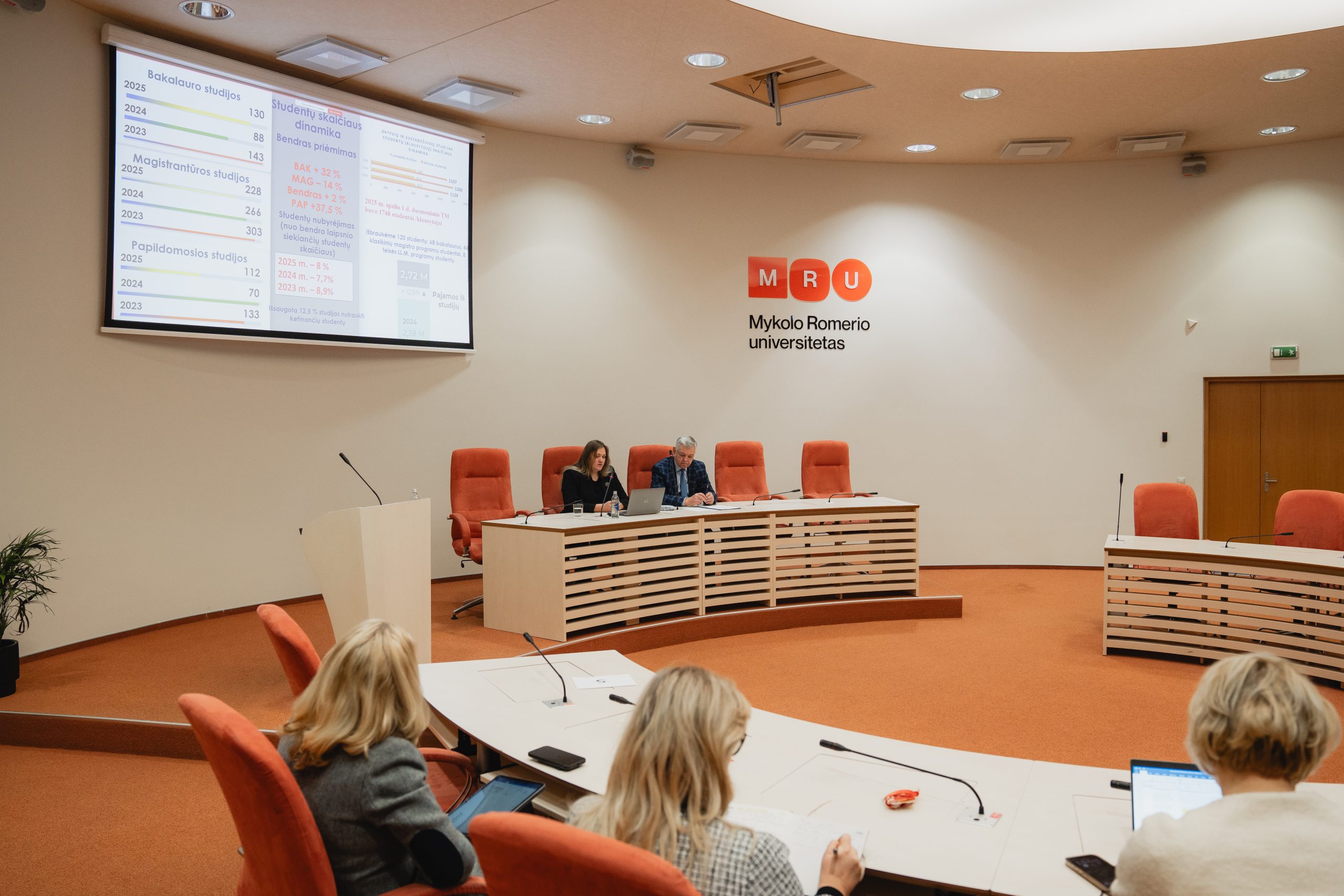 Didelis dėmesys skirtas studijų programų portfelio peržiūrai: optimizuotos specializacijos, atnaujintas studijų turinys, stiprintas srautinis mokymas, rengtos naujos programos – „Teisė, finansų inovacijos ir dirbtinis intelektas“ bei „Teisės“ vientisųjų studijų programa. Mentorystės programoje dalyvavo daugiau nei 100 studentų ir MRU TM alumnų porų.