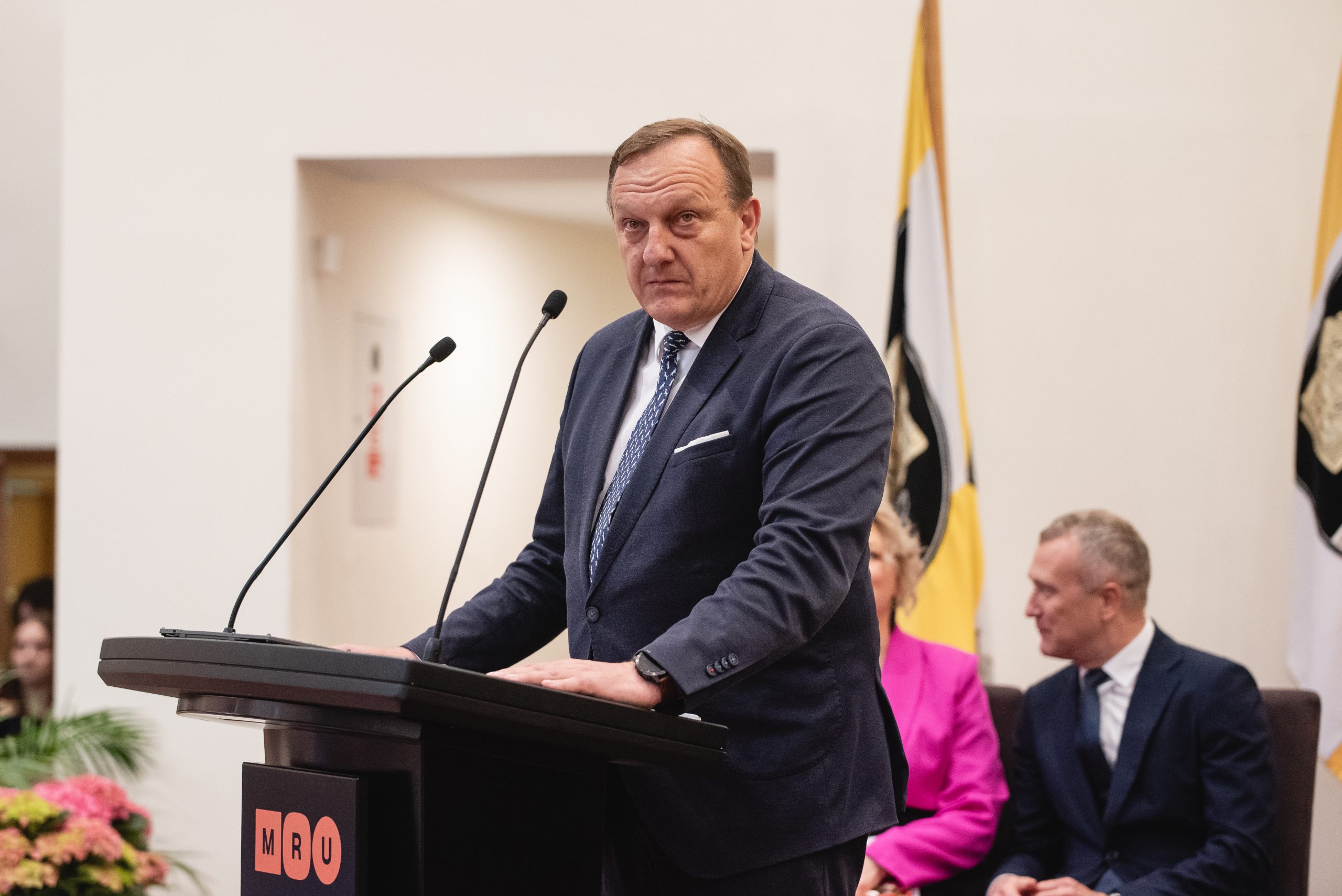 Taip pat sveikinimo žodį tarė ir Viešojo saugumo akademijos dekanas doc. dr. Marius Bileišis: „Sveikinu tapus kvalifikuotais teisės specialistais! Iš studijų žinosite, bet, linkėdamas profesinės sėkmės, paminėsiu svarbu dalyką apie teisę – ji yra įmanoma tik ten, kur yra valstybė. Neabejoju, kad kasdieniais darbais prisidėsite prie stipresnės valstybės, kurioje visi kuriame savo gyvenimus!“
