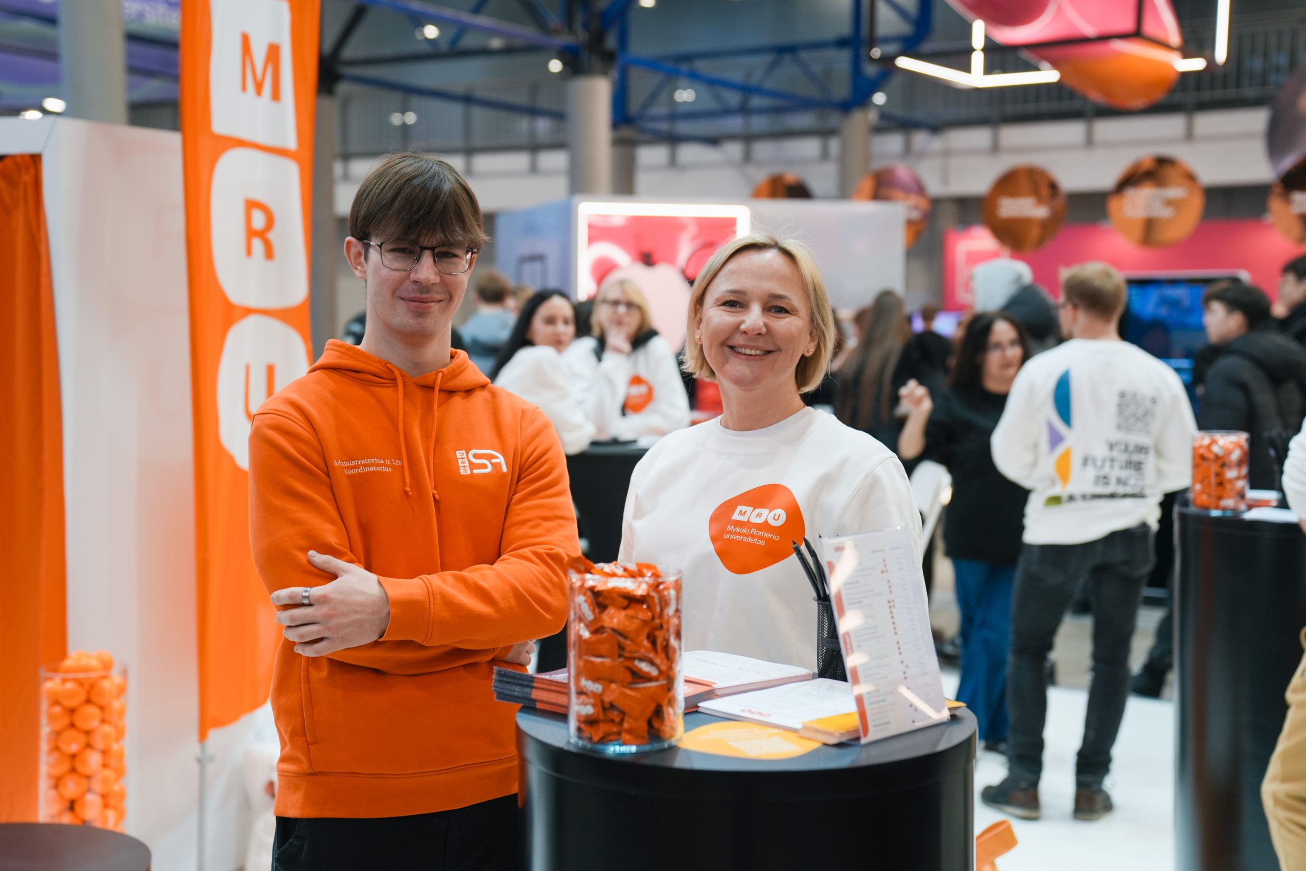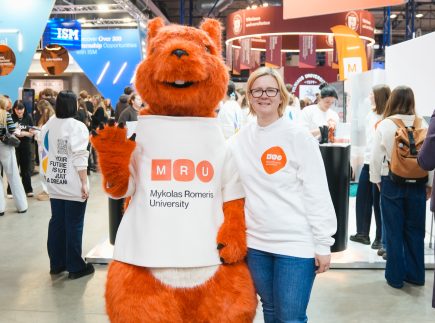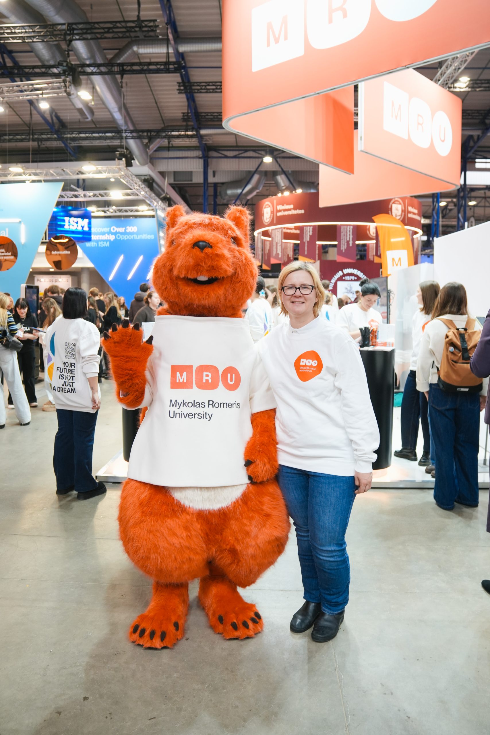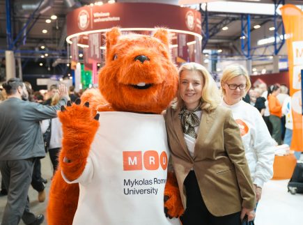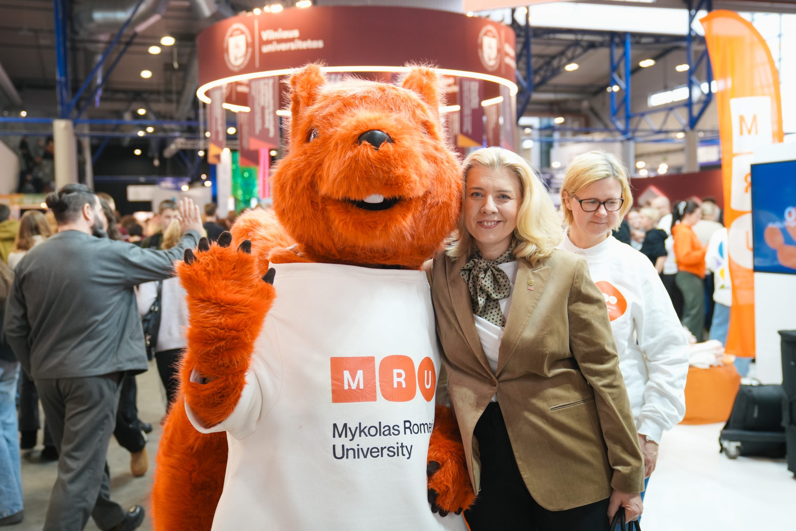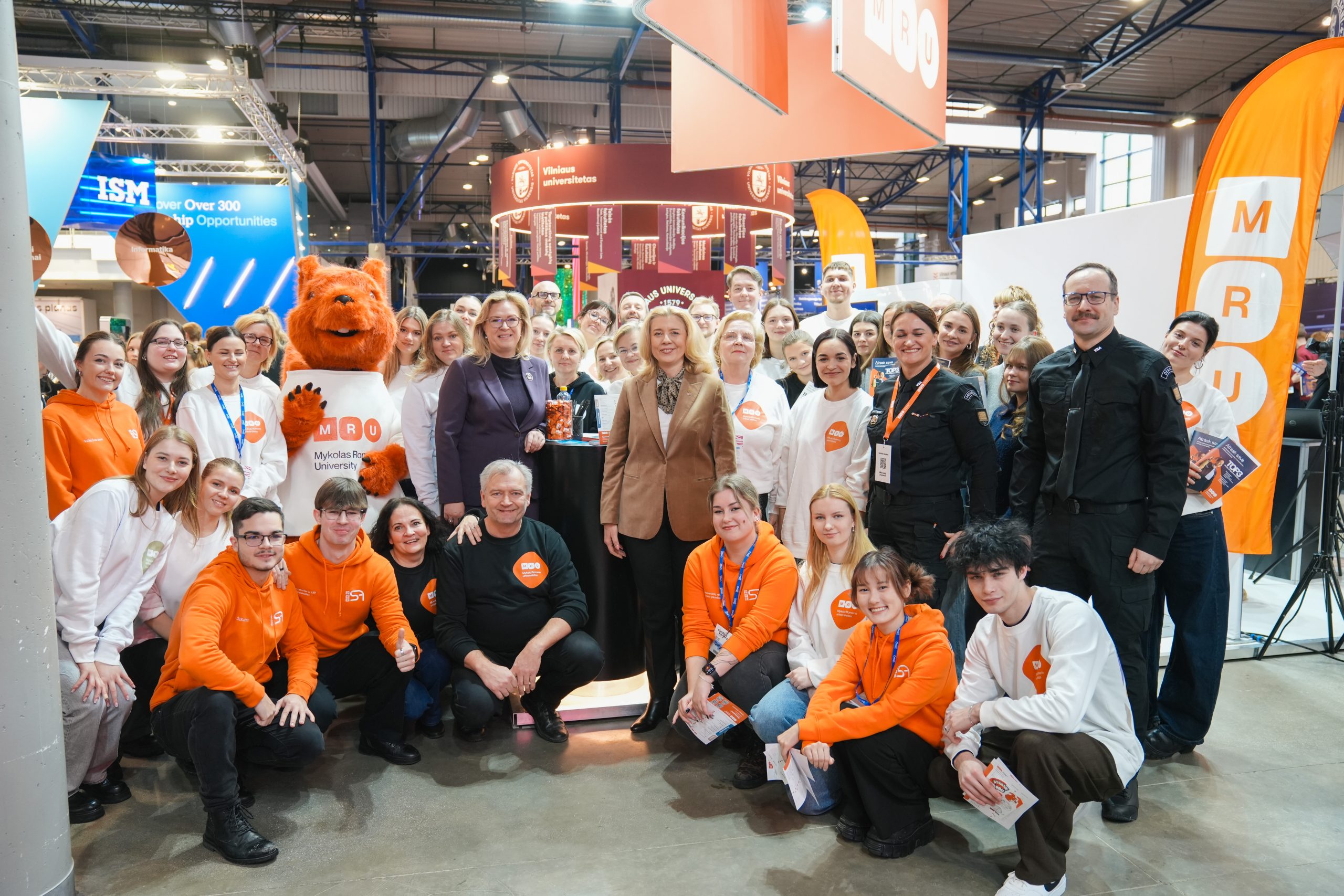 MRU stende lankytojus pasitiko priėmimo specialistai, fakultetų atstovai bei studentai. O jaukią ir pozityvią atmosferą kūrė MRU talismanas Mruniukas, džiuginęs studijų mugės dalyvius. Jie pristatė naujas siūlomas studijų kryptis ir platų studijų programų pasirinkimą, pasakojo apie studijų kasdienybę, tarptautinius mainus, praktikų galimybes bei studijų ir darbo derinimą.