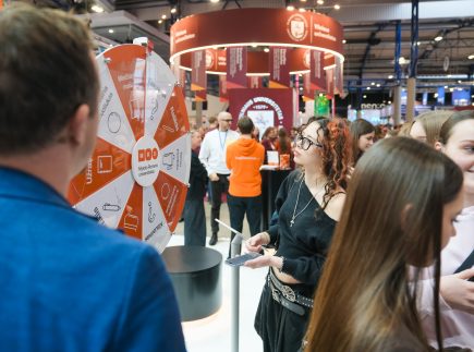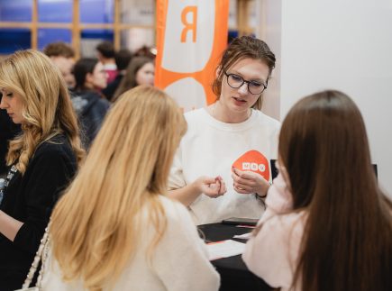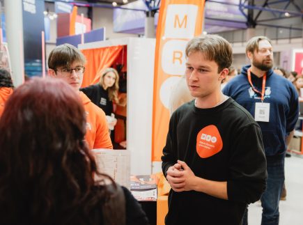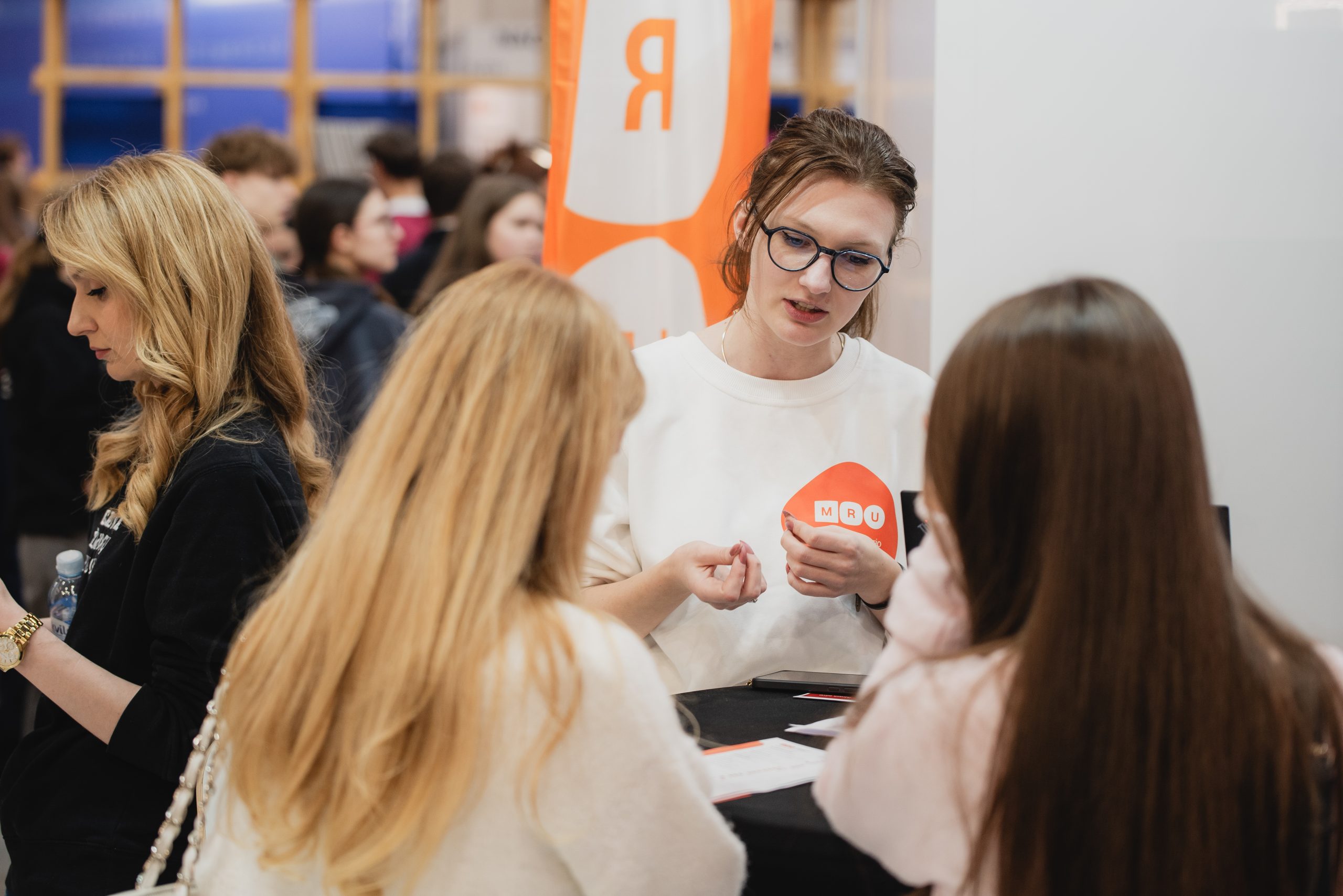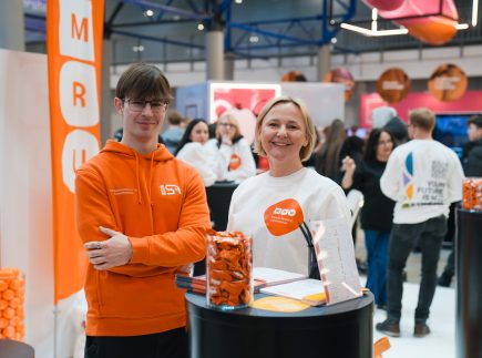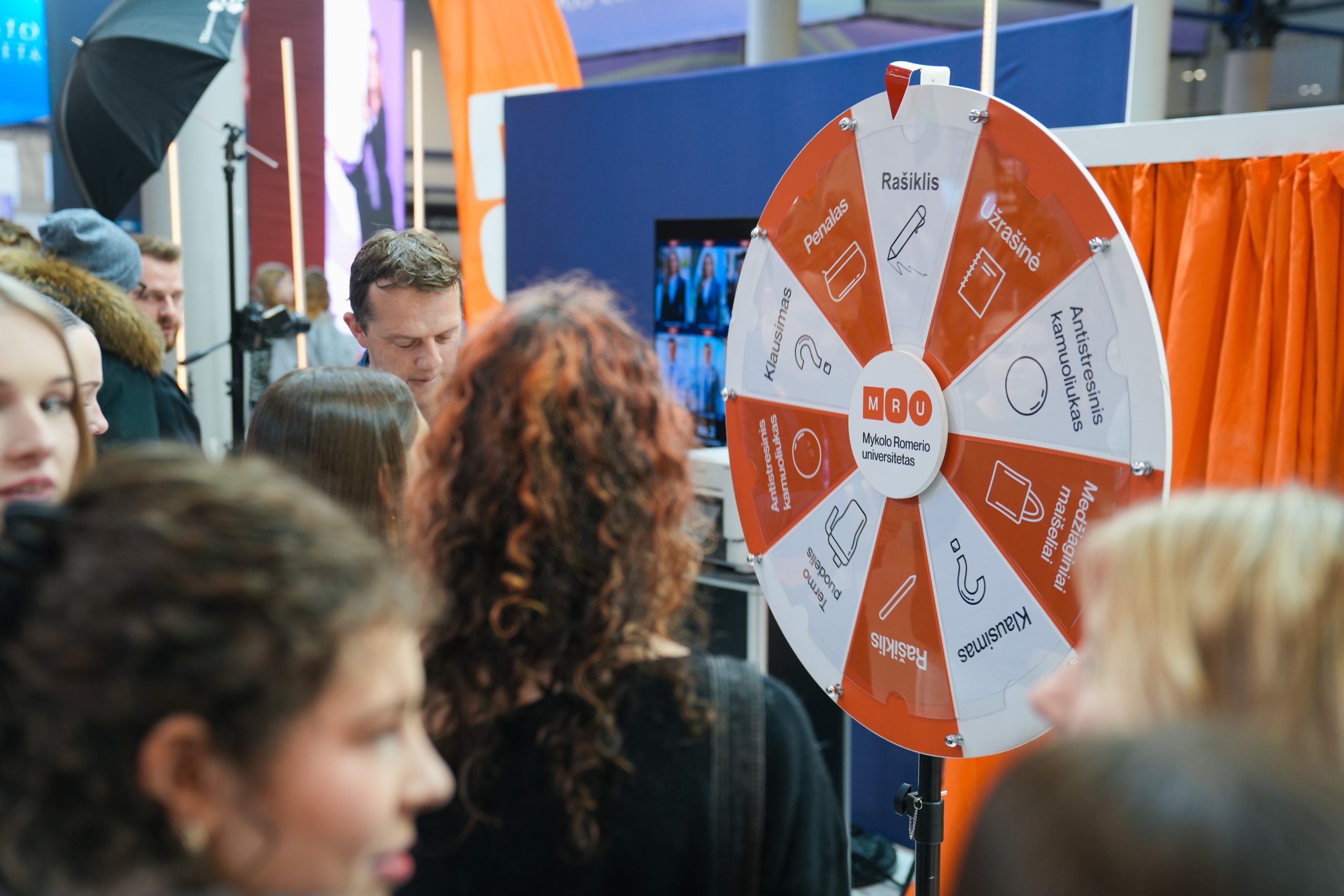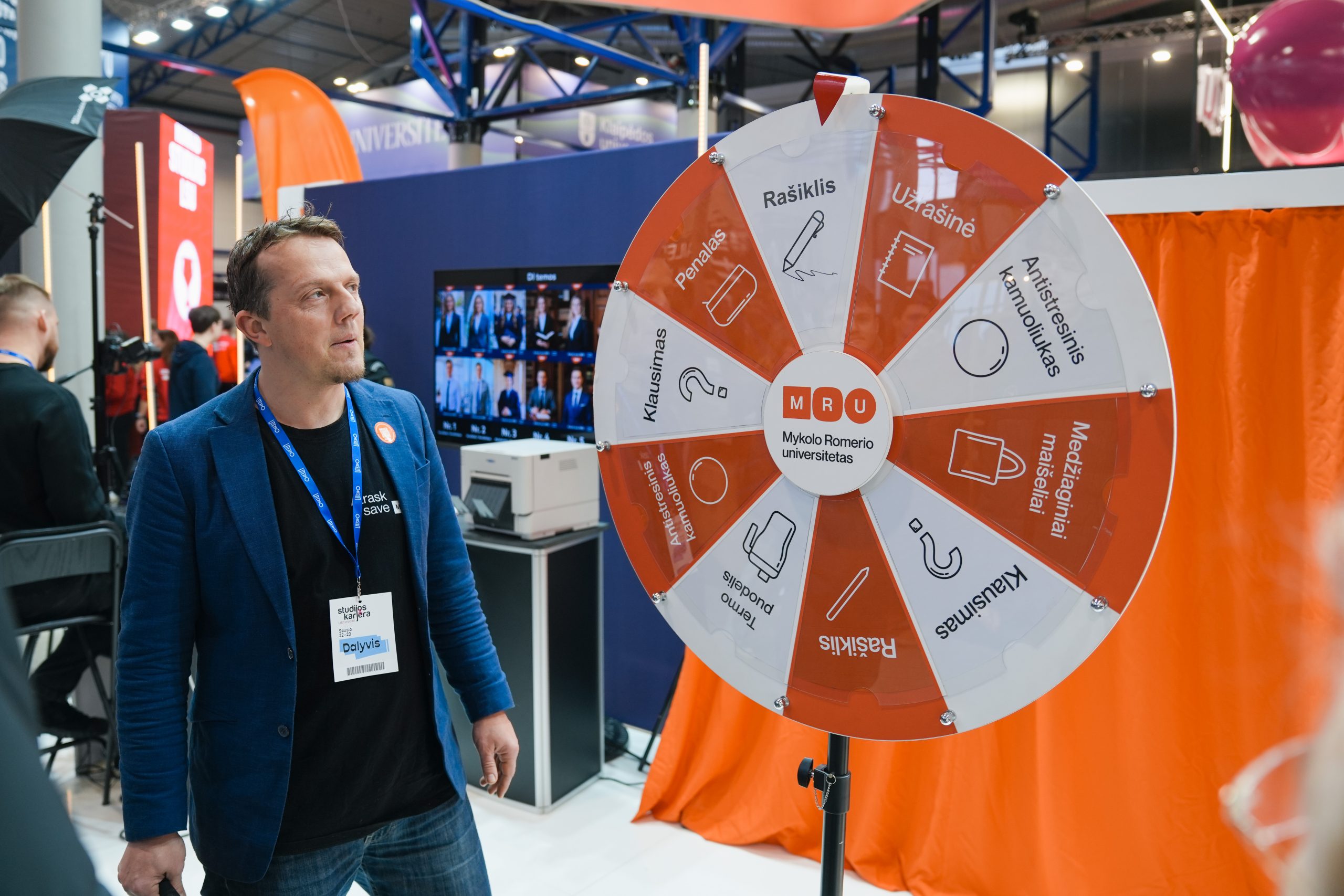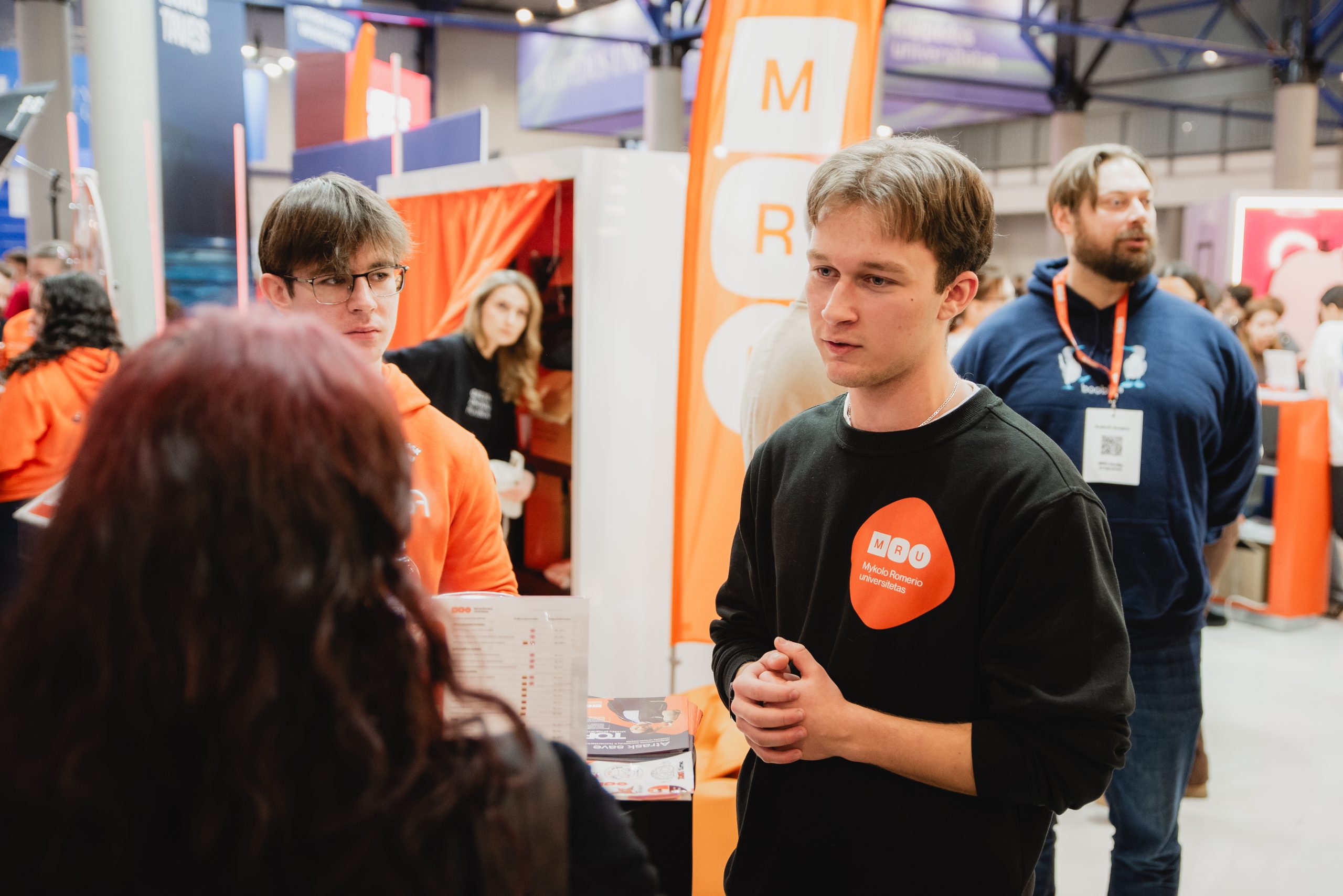 MRU stende lankytojus pasitiko priėmimo specialistai, fakultetų atstovai bei studentai. O jaukią ir pozityvią atmosferą kūrė MRU talismanas Mruniukas, džiuginęs studijų mugės dalyvius. Jie pristatė naujas siūlomas studijų kryptis ir platų studijų programų pasirinkimą, pasakojo apie studijų kasdienybę, tarptautinius mainus, praktikų galimybes bei studijų ir darbo derinimą.