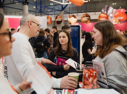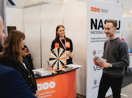 Sausio 22–23 dienomis Vilniuje, „LITEXPO“, vykusioje studijų mugėje „KARJERA & STUDIJOS Lietuvoje 2026“ Mykolo Romerio universiteto (MRU) stende būsimi studentai ir kiti renginio dalyviai turėjo galimybę iš arčiau susipažinti su universitetu bei jo siūlomomis bakalauro ir magistro studijų programomis Vilniuje, Kaune ir Marijampolėje.