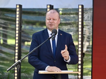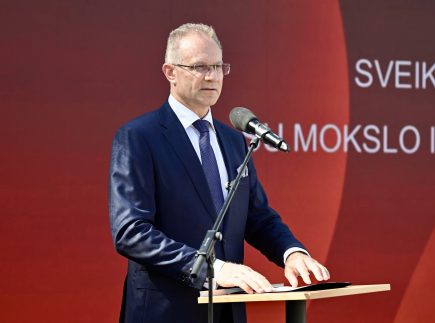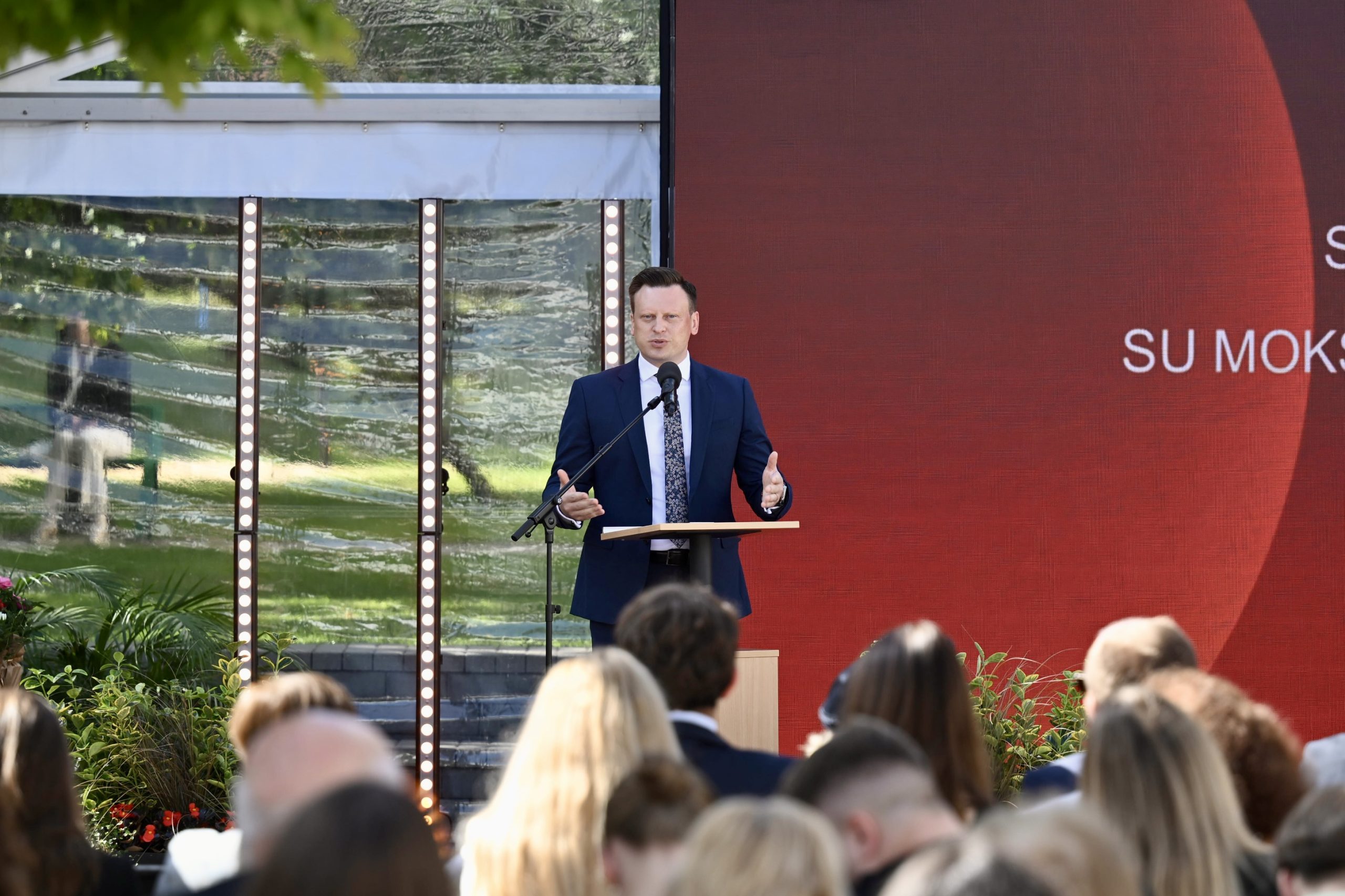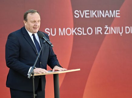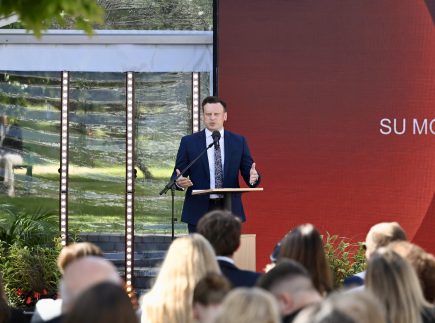 Seimo pirmininkas, MRU alumnas Saulius Skvernelis prisiminė Universiteto įkūrimo istoriją, pabrėždamas, kad jo steigimas buvo drąsus ir neeilinis žingsnis, tapęs langu į Vakarus.